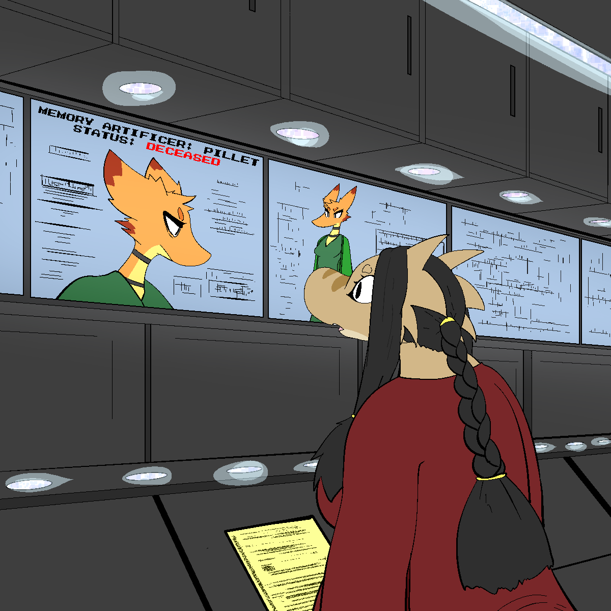 "Oh!" Oh shoot what would Pillet say? She'd at least not be too coarse about it, right? Let's see... "Awful. Sorry to hear that, may he rest with you and may you both reunite when the time comes." No, still too formal, but Pillet would have some kind of wishes to give.