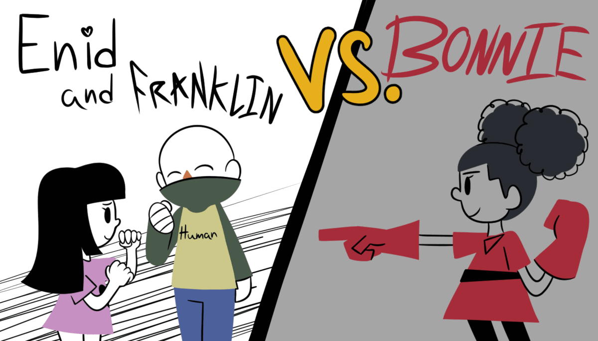 At this, both the sorrowful Germ and the now revealed figure of a tiny two-legged creature with a long trunk of a nose and a singular, ever-crying eye, lift off the ground and turn into clouds of dust. A moment later, a gust of wind burst from within the dust, blowing it away as Dusty steps onto the field, a cheery expression etched on her face.