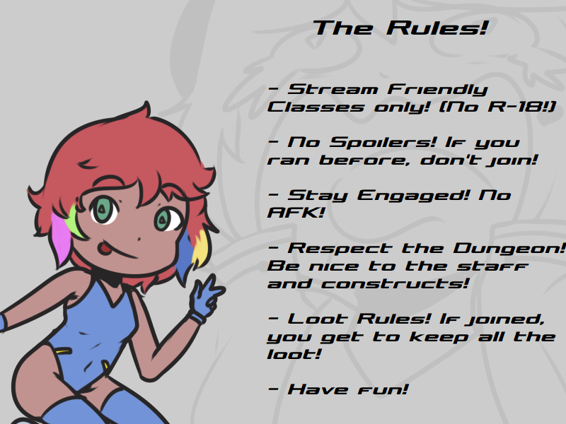 >SYTYCS now has three difficulties in preparation of the visit. Even inspection teams need to relax, and we want to cater to all levels! The adventurer is asked to test all three out, as well as one longer session that mixes all three difficulties. If they try all four, they get a reward. No pass/fail from actual dancing competence. If they attack anything, gravity slimes pour in.