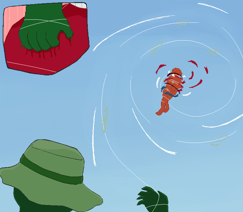 Looked like he teleported behind you, wrapped you in fishing line and hooks, then threw you into the sky so the hooks shredded your clothes.