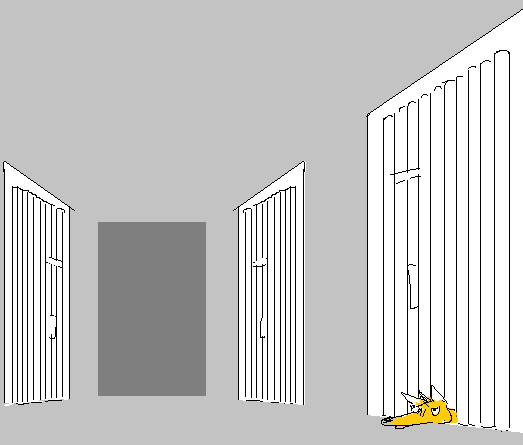From this new vantage point you can see the two empty cells across from you. The one straight across is labeled “01” and the one to its right is labeled “02”. To your right, is a dead end. To your left, the hall makes a sharp right turn. This facility isn’t built to give you all the details at a distant glance. You do know that there is one security checkpoint between the cells and the entrance.
