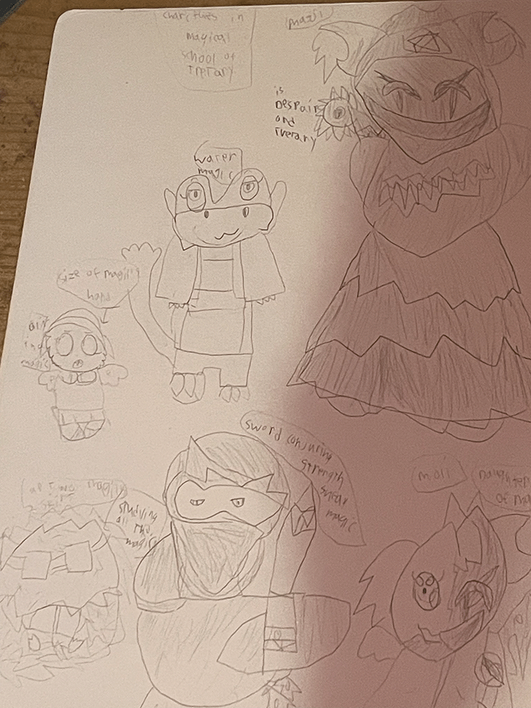 M: The three-part pirate saga you had because you heard someone gush about one piece while doing the dishes. The first includes sacrificing an elemental child to save the world; the second contains a YouTube essay Format. And pig Racism? The third one consists of some goons trying to reach home and a how-to-draw amiel (From Tenazaki quest.) piece of paper.