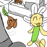 (25) Becomes a Digimon, or something like Isekai that looks like an mixture between an dragon victini, and something else, and there's very convoluted lore on how the very marketable guy is actually this really powerful beast that people want to fight.