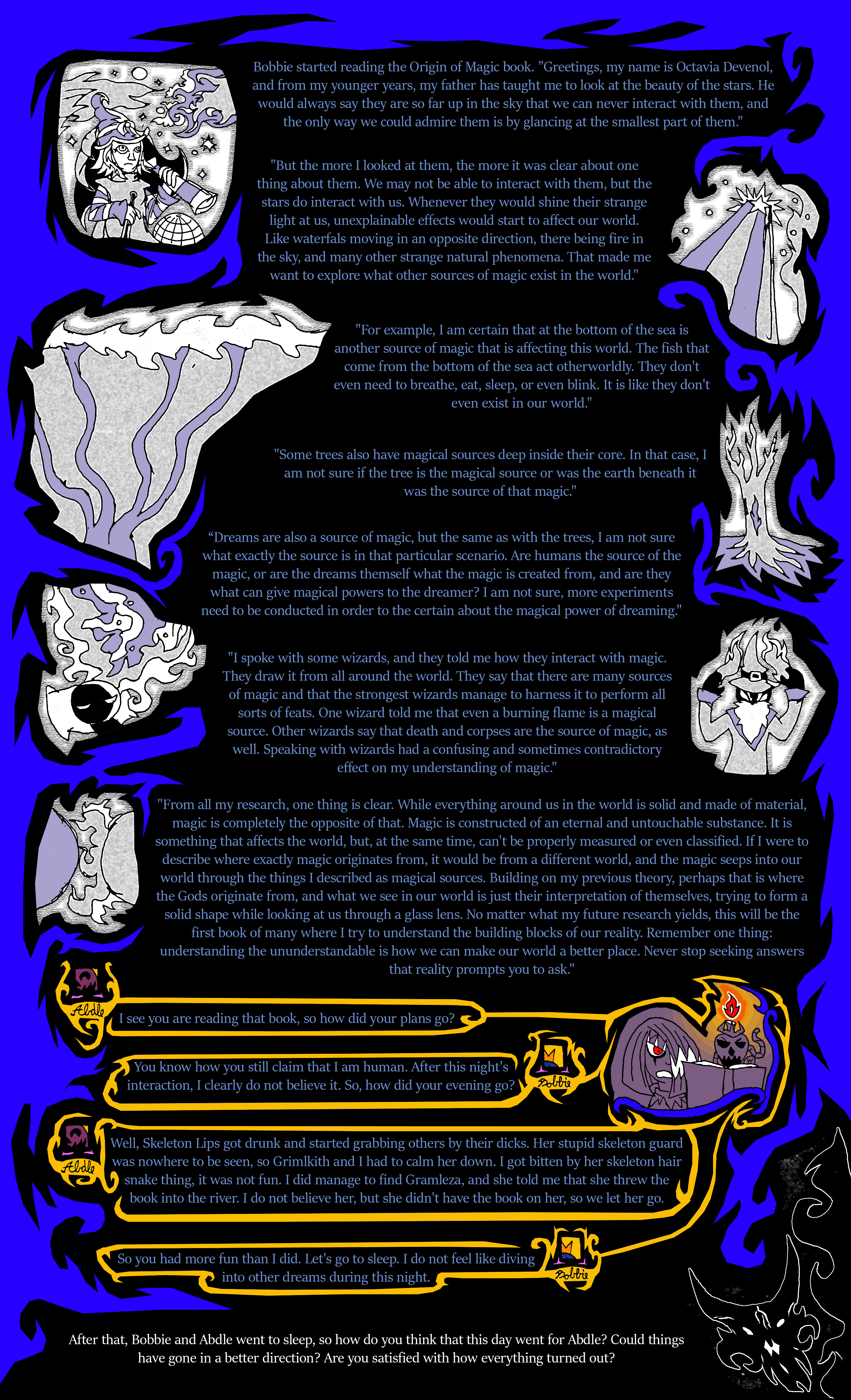 "Fifth time. No, what really worries me is if Saharnya makes good on her promise to ensure my banishment. I like Saharnya, so I'm not going to drag her down. I have to rise up alongside her, prove I'm not expendable to the company."