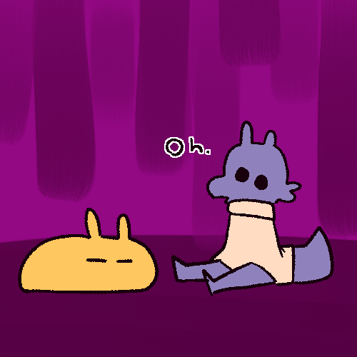 Gently put down Godkiller (Thanks for the escort, buddy! You'll take it from here.), discard your cloak (since, hey, bad memories) and wander up to give the the big ol' thing a gentle squish-hug as you bump your fine tail-part into their side, by their glowing heart.