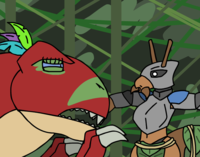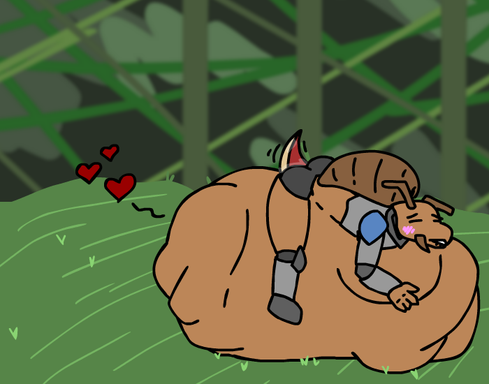 ”Look! Treasure!” you say as you bounce forward, but Herod grabs your shoulder and pull you back, before gesturing towards the gator and whispering, ”And a sleeping Kroah-dil.” Oh, right, you’ll need to ask the nice gator man if you can have his treasure first, of course! So let’s get to it, ”Let’s wake him up and say hi!” But for some reason, the Zalbian next to you gives you that look he usually have when he thinks you're completely daft, before telling you, ”…no, let’s not do that.” You cock your head to the side and ask him, ”Why not?” which just makes him give you that look once again, ”Um… because it’s a bad idea? And he might be grumpy?” Oh, you didn’t think about that! Of course he wouldn’t give you any treasure if you woke him up from his nice nap, duh! ”Oh, right… no one likes a grumpy gator after all *giggle*” you tell Herod as you elbow his ribs, but he doesn’t answer. ”*Sigh*”