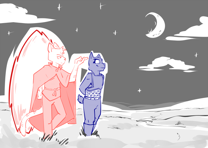 A further point - what all out there is even after him? He's 'just' a myth, a legend thought long gone by all. He could do so much better than spend this remaining time being haunted by a past so distant. Even if something should come, some fey elemental ghost of vengeance? You got skills. You got friends. Ghost-score-settling is your THING. You'll guard even his afeared ass to the last 'till it's time to pass.