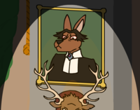 Belle: After taking another sip from the glass, you ask, “Speaking of the old owner… that old sign outside, with the red eyed raven? What is that about?”