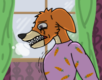 Perry: The dog doesn’t answer at first, instead pulling out his own glass and filling it with the same cider he gave you, “Ah, yes, that old thing. Been meaning to get rid of it but… it got its charm you know? This place used to be called ‘The crow nest’ before I took over, not unlike a lot of other things in this town. They have a bit of a crow theme going on, you know.” he takes a quick sip before adding, “And the eyes are supposed to be brown, but wear and tear has made it look a lot more menacing, lass.”