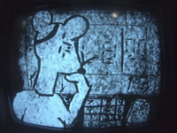 Through the camera, you can hear Davey muttering ideas to himself, though its difficult to tell what. You keep quiet to avoid distracting him.