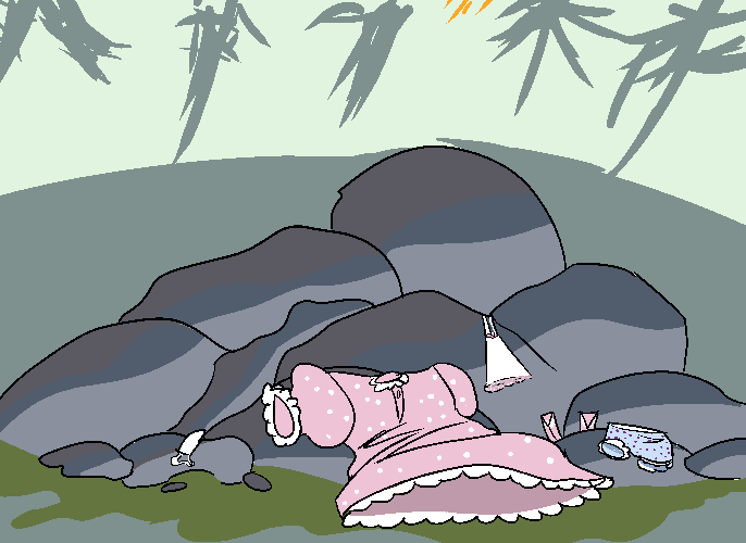 Ventura dissipates into a whirlwind and swirls around Pierre’s legs. He lets out a yelp and covers his crotch. The winds die down for a moment but then resurge, twice as strong as before, then a howling, shrieking wind whips the untied Lucky Panties down Pierre’s legs and they fly away into the sky, never to be seen again.