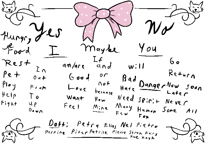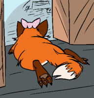 “Yeah, well,” Landi says, “Dotti’s making life REAL HARD for me. She makes me get up before dawn EVERY MORNING she has work and makes me fluff her tails and comb her hair and make her all pretty and put perfume on her, and before she goes out and does fancy fox stuff too.”