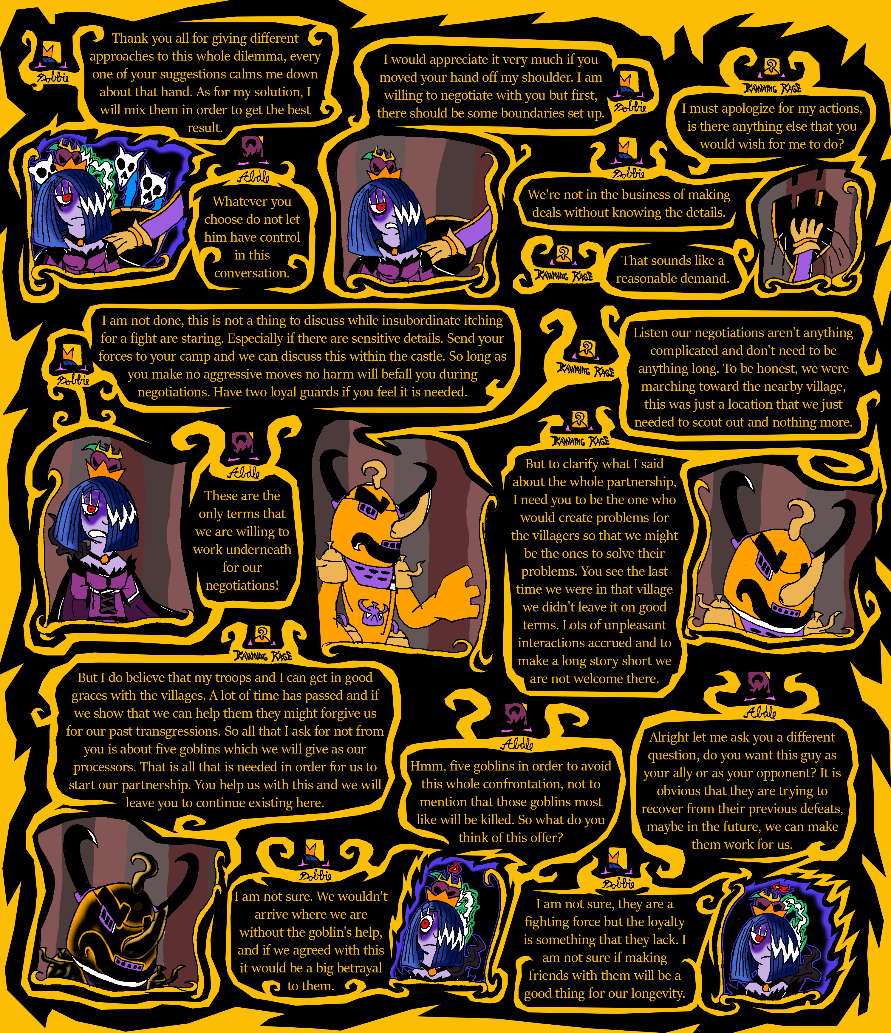 Try laughing and saying that while you were distracting him, your goblins should be now be finished performing their sacrificial ritual on the steed you killed, along with the other sacrifices you performed in the past. And with enough souls, you should now pretty much be able to wipe out his army with the aid of unseen powerful ghostly warriors, and as a generous leader, you'll spare their lives if he and his army doesn't leave now.
