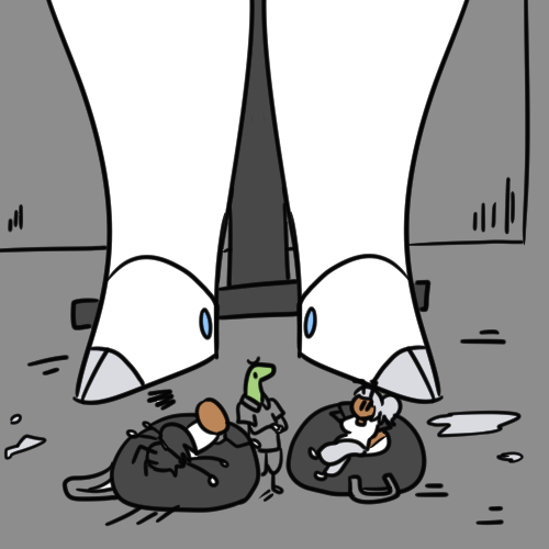 I think about it for a moment. “Well, compare our relative sizes to the machine at time of dosing. Isn’t it the same amount of growth, objectively? Even a few inches can be pretty dramatic when you’re as small as we are.”