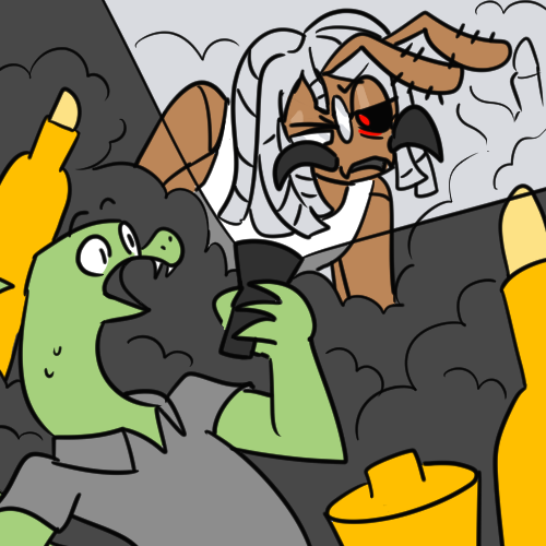 Jaina thinks. “Well, she wasn’t hit with blue gas first, so… do we have the room to test that here?”