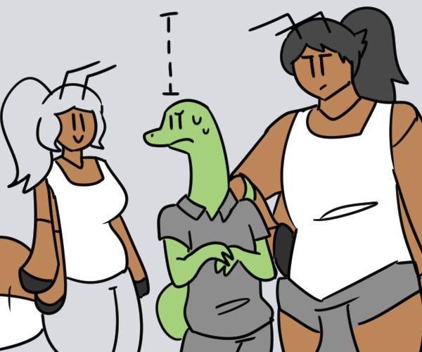 “Oh, hmm. Another good idea, we can test our plan here too.” Measuring her up next to the microscope, Anet’s about as small relative to the lab as Pent was when enlarged.