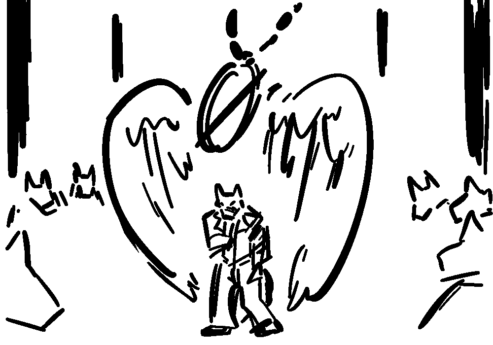 The approaching Bites watch with rapt yet cautious attention. A mixture of shock, awe, and confusion sprinkle their faces. They have never seen their almighty Boss brought so low before; wounded or not, something in their perspective changes. Though maybe it's justified, when seeing the angel up close.