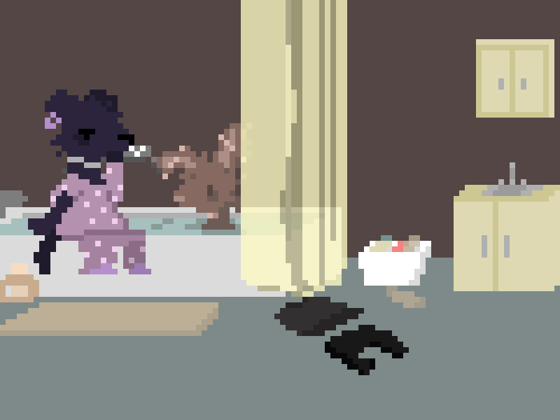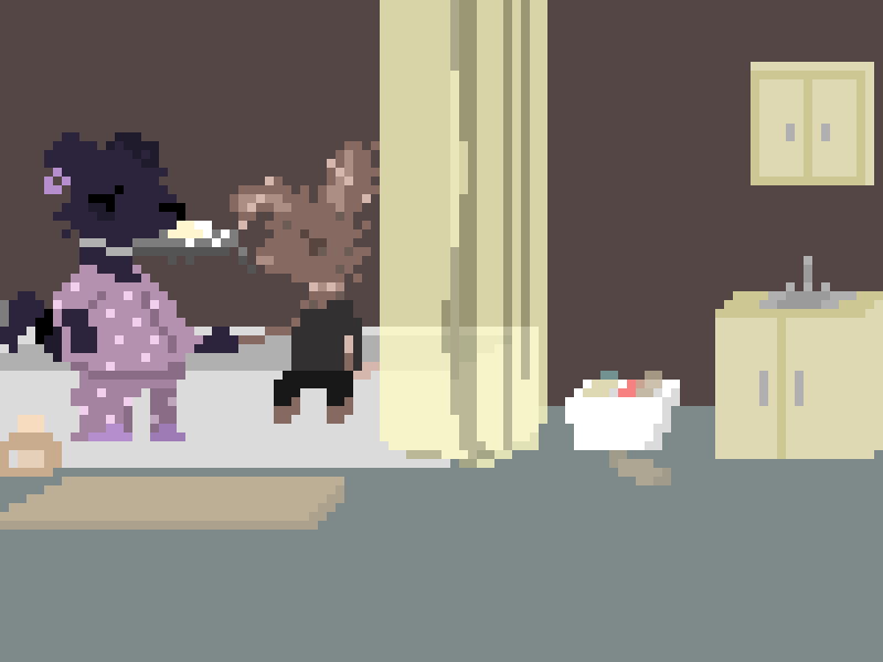 as for cleaning up a space for her to sleep, she can sleep on the couch, I mean, you slept on the couch earlier, so it should be fine for her. plus, she can use that alone time to think, she already had so much happen to her, she might need some time alone to take things in. Otherwise, she already agreed to help clean, so maybe she can clean up a space on her own. remember, you need her help as much as she needs your help, and you helped her in a big way by bringing her in, and helping her with her flea problem.
