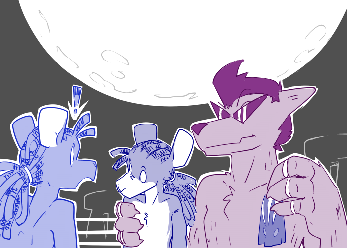 The wolf cocks his head, surprised. “Not the line of questioning I expected from you: but then again, you three are full of the unexpected.” Argus tilts his head back as he thinks aloud, “I suppose it’s because I consider myself a bit of an artist. Each exhibit is carefully sculpted to convey the full expression of ecstasy. But in good art, there needs to be room for the imagination of the audience to fill in what’s missing: makes it hotter that way.”