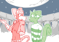 We can tell that this is like some kind of mental realm... so when Argus pulls us into His gallery, He's really pulling us into His mind, like a predator swallowing His prey... or a protector embracing His lovers. What we're seeing here is Master's memories of us and all the pets He's owned in the past, and what we saw before He captured us is Him putting those memories on display to entertain His guests. That must be what the "flash" the others mentioned is for: a scanning effect to memorize every fiber of our fur, every flex of our muscles, every spark of pleasure in our brains, all preserved perfectly in Master's mind! That would help with magical healing; is there some relation?