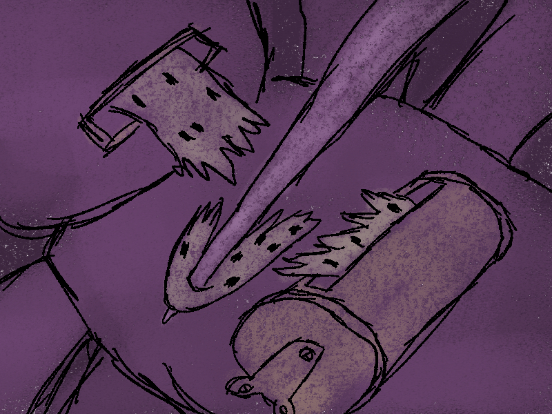 You tell the tragedy of Subtlety, the deer maiden who fell in love with a wolf. The big fellow listens raptly as you recount how the shy doe sought the help of the Witch to become a wolf herself and capture the heart of her love, only to find after her long journey that he had taken another deer as his lover, despite the ire of their families. Her despair turned to seething resentment, and she stoked the fires of jealousy and distrust between the forest folk to try and tear the couple apart. The fighting became so bad that it drew the attention of human hunters, and worse, witchfinders. After terrible losses the bigger folk of the forest were forced to retreat into the deep woods, where the Witch made such impenetrable snares and tangles that the hunters could pursue no further.