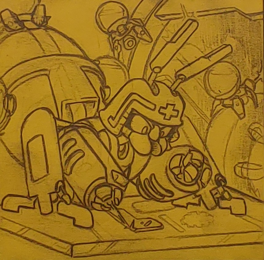Chemical Formixer is sad that one of the mechaniloids got hurt, but she is happy that they are feeling better!