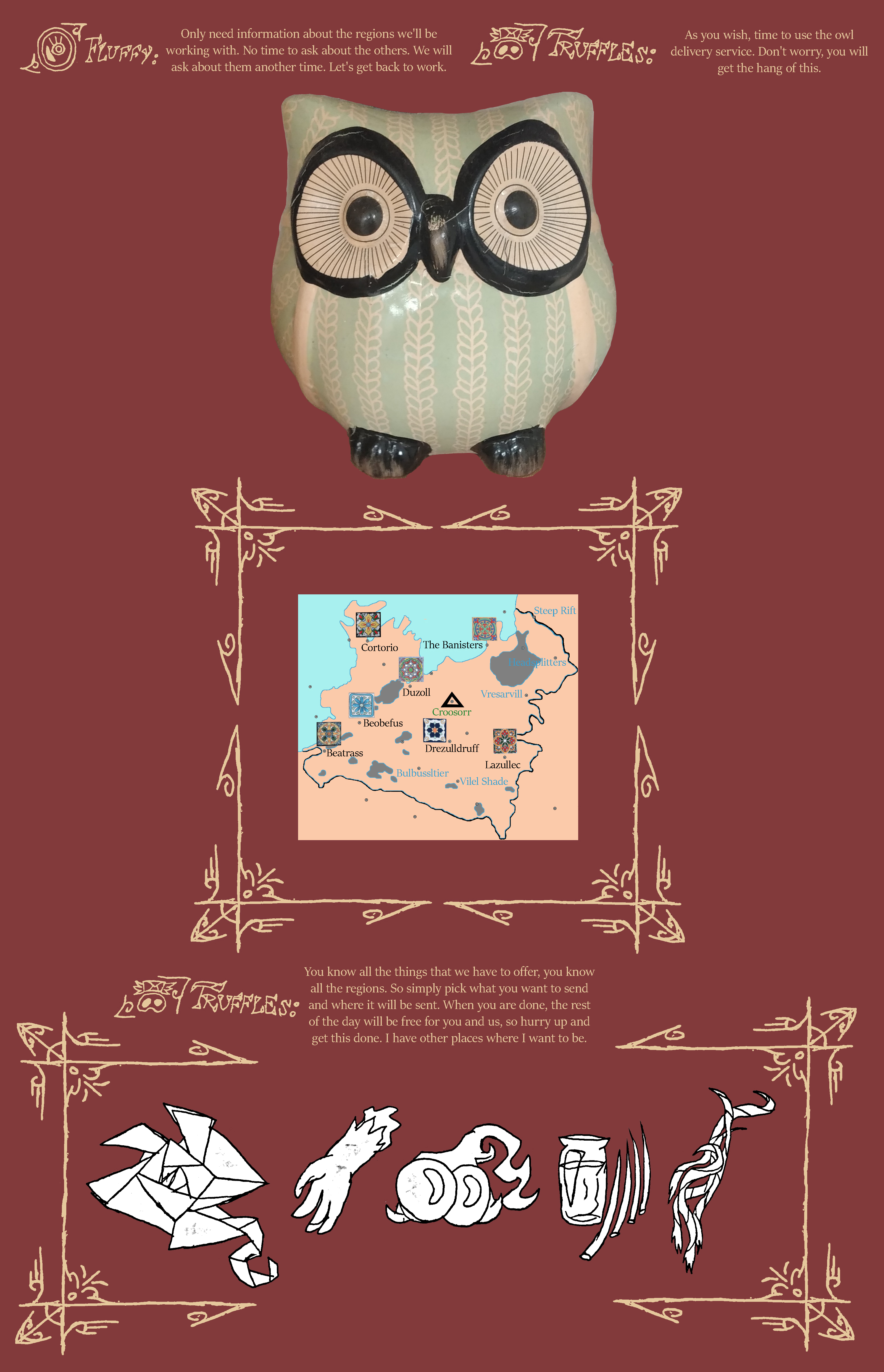 Ballerina Knight: excellent job. Though I wonder, what was her side of the story with what happened with the imprisoned knight and the merchants? She probably witnessed all that. Also, did she find out why that eye was observing the village? I suggest giving her bonus pay for taking care of both jobs.