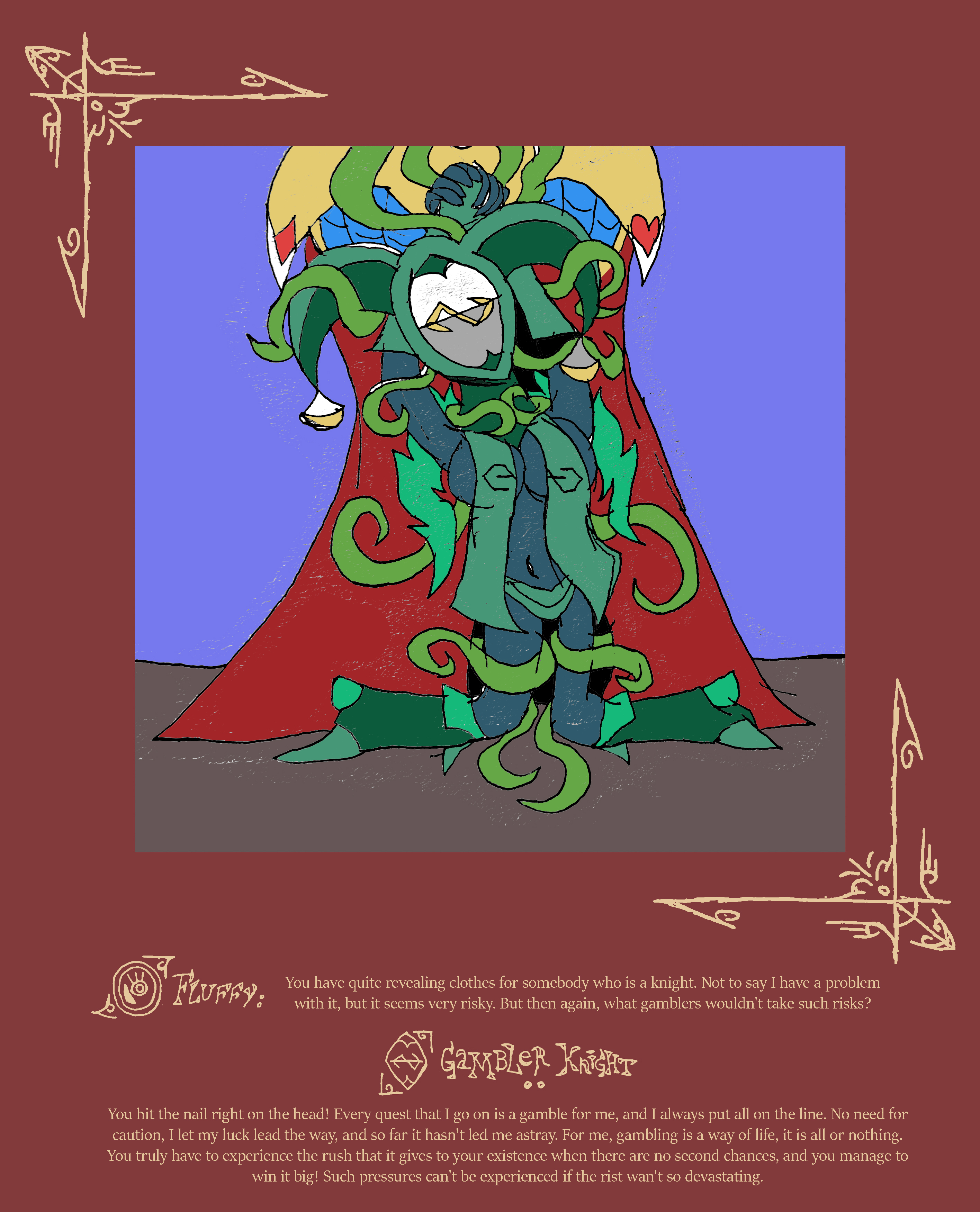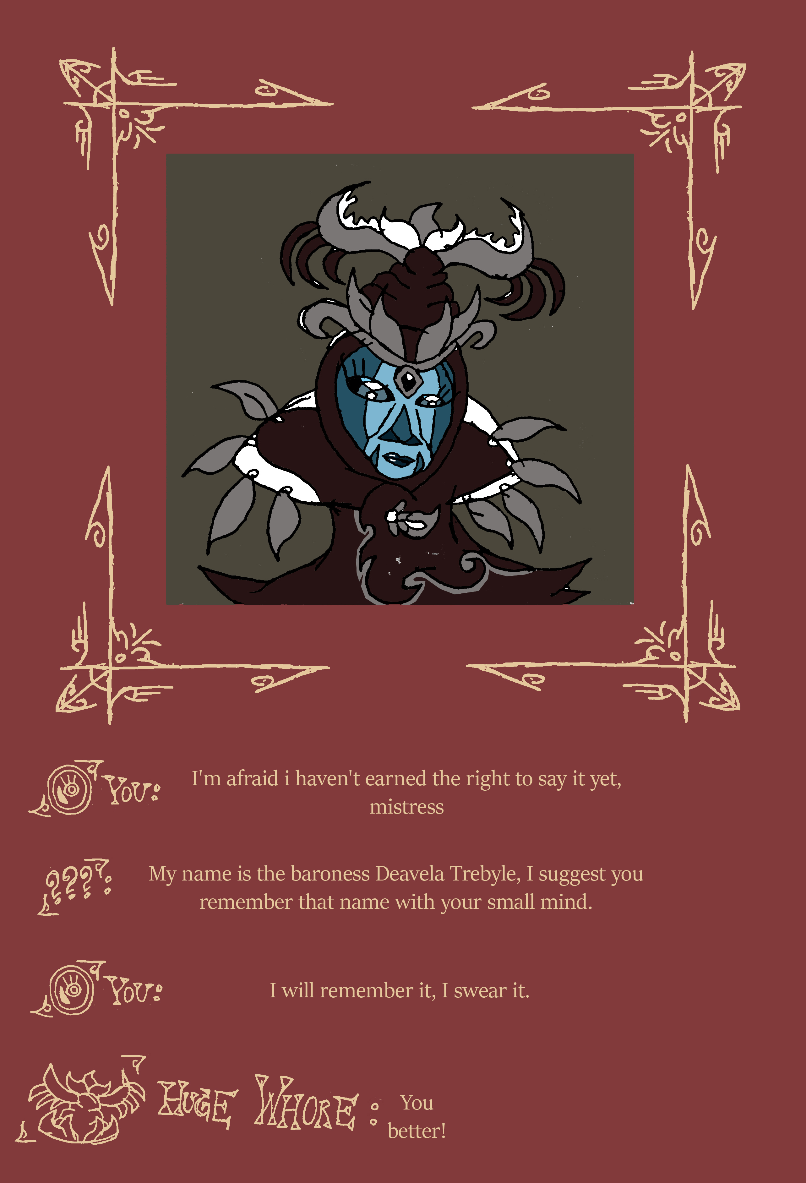 Ballerina Knight: excellent job. Though I wonder, what was her side of the story with what happened with the imprisoned knight and the merchants? She probably witnessed all that. Also, did she find out why that eye was observing the village? I suggest giving her bonus pay for taking care of both jobs.