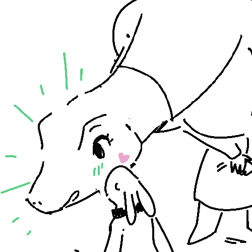 The tip of my tail curls and I lift my hips to show my enthusiasm. This is quite different from the all encompassing love you and I had, but It’s been far too long without intimate touch and the firm drive of Rudger’s arm makes me hiss with pleasure. He uses his free hand to stroke my upper folds and I catch his big eyes staring at me over the curve of my sacs.