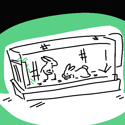 His expression clears. “Oh I know most of the stuff about that already, my cagemates and I spent a lot of time having sex. They kept us in a different room from any female rabbits and there wasn’t much else to do.”