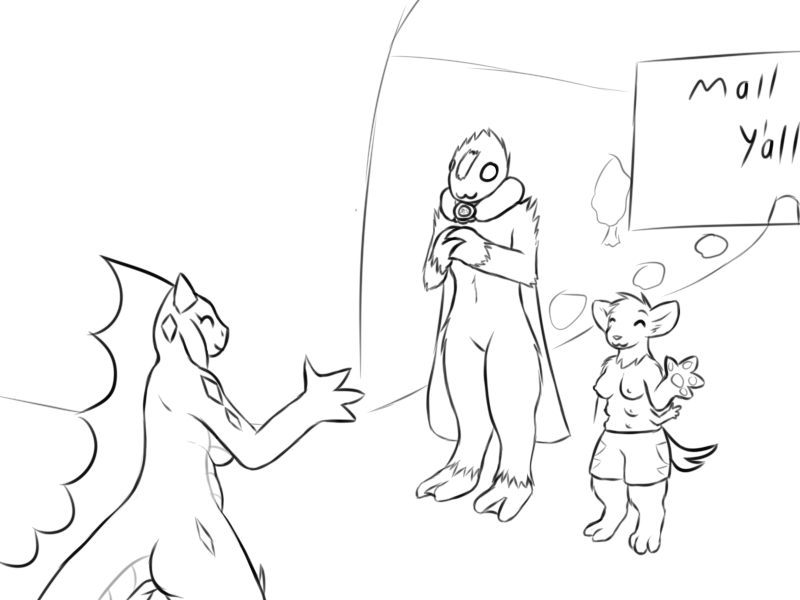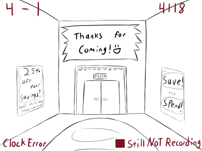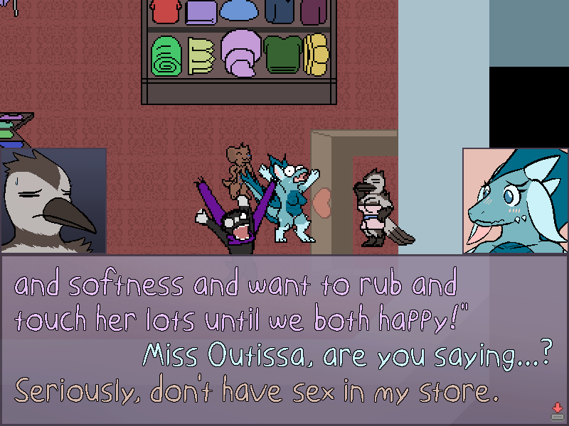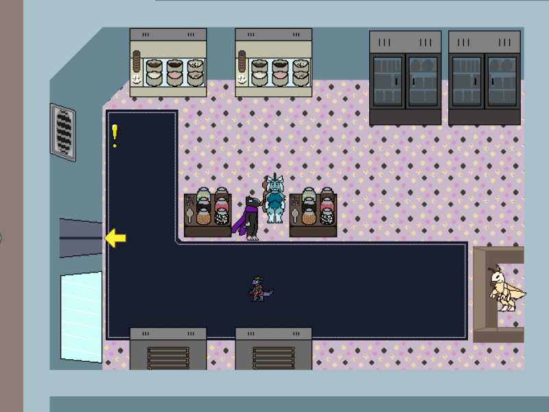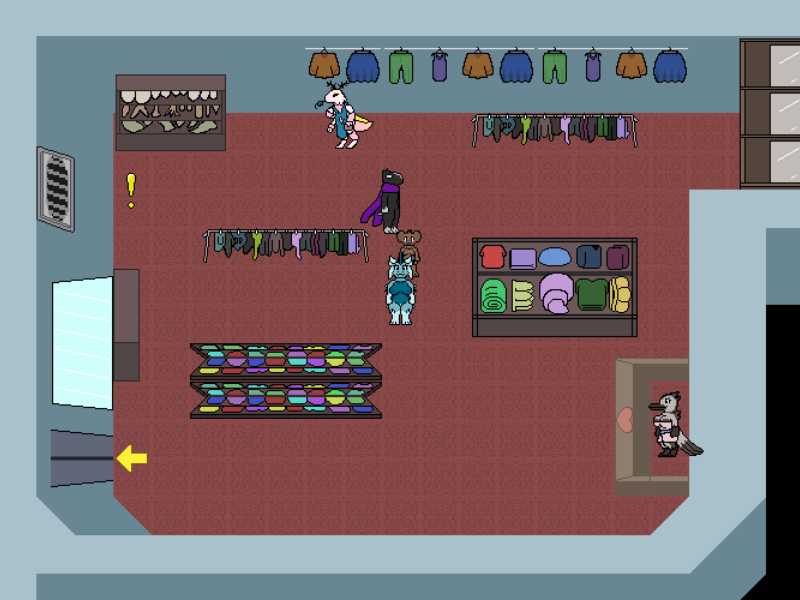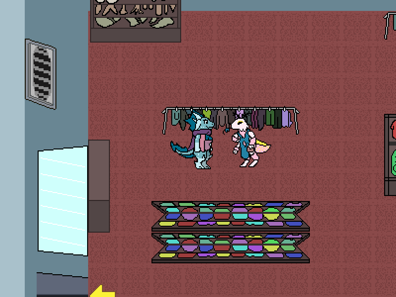 Which actually matches the conversation. Because why would Triti be hesitating on going into a store that they're already inside of? So I think Triti needs to be in the hall, not in the store.