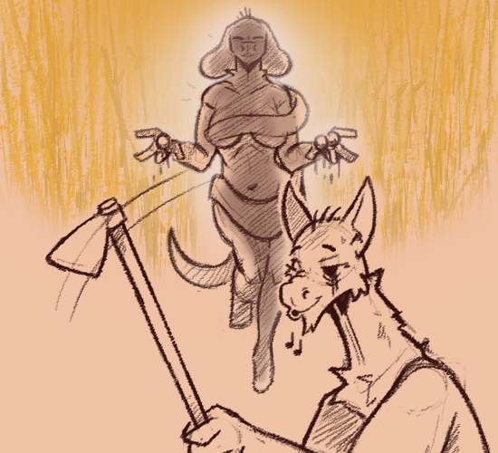 Then, Suyr tried to tend to his own farm and the king's taxes, and nothing else. The king's men took more and more and expected higher quotas and gave restrictive orders that left his crops withered.