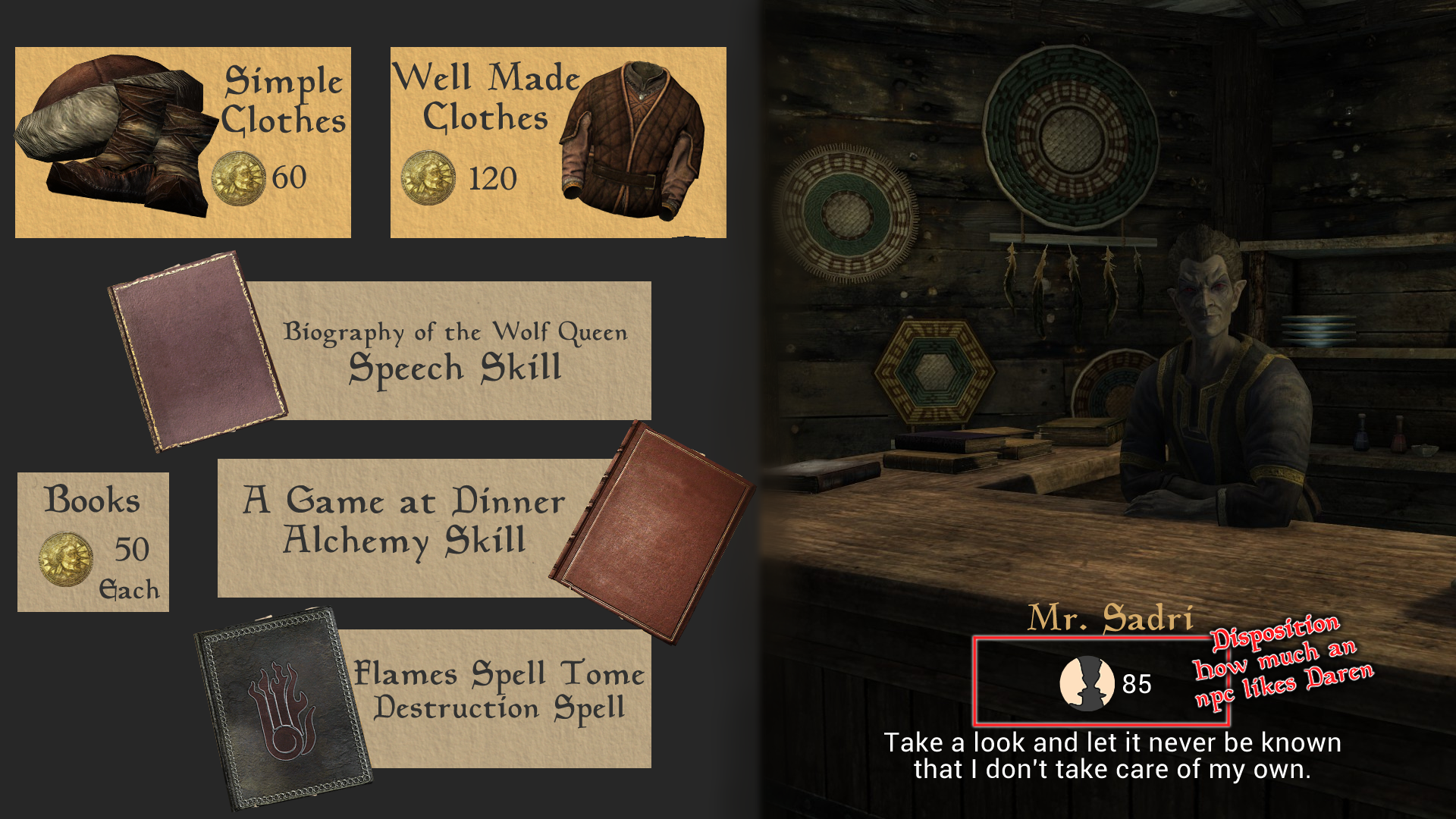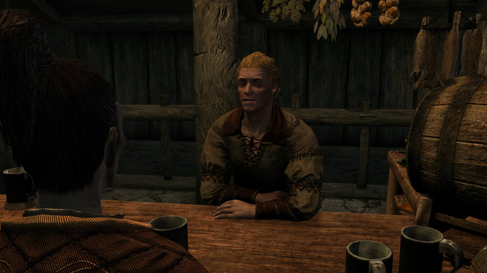 “Looking to buy extra pelts and skins from travelers and hunters,” writes Thonjolf the local leatherworker. Pelts and skins, I’d never hunted wild animals before.