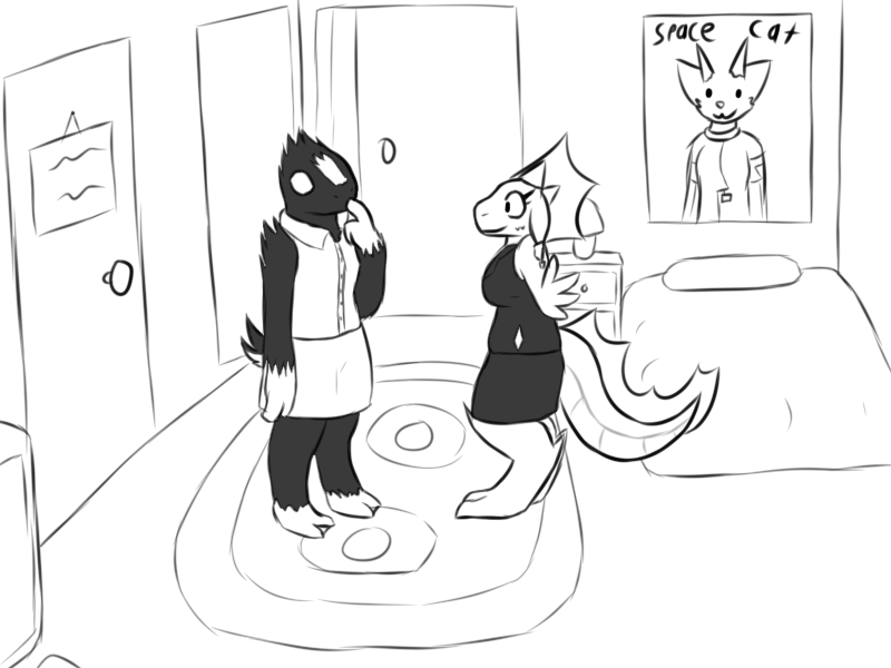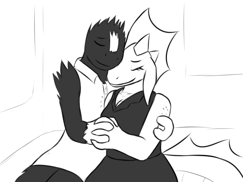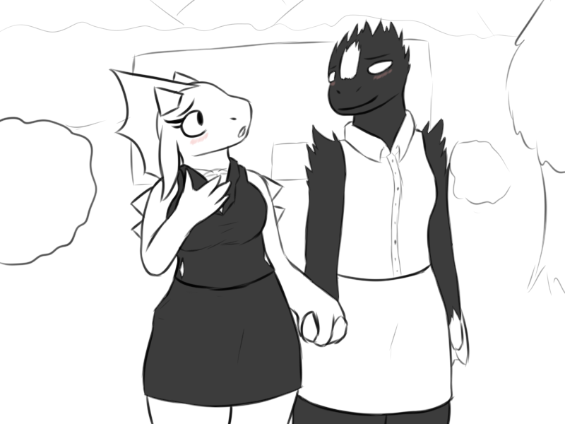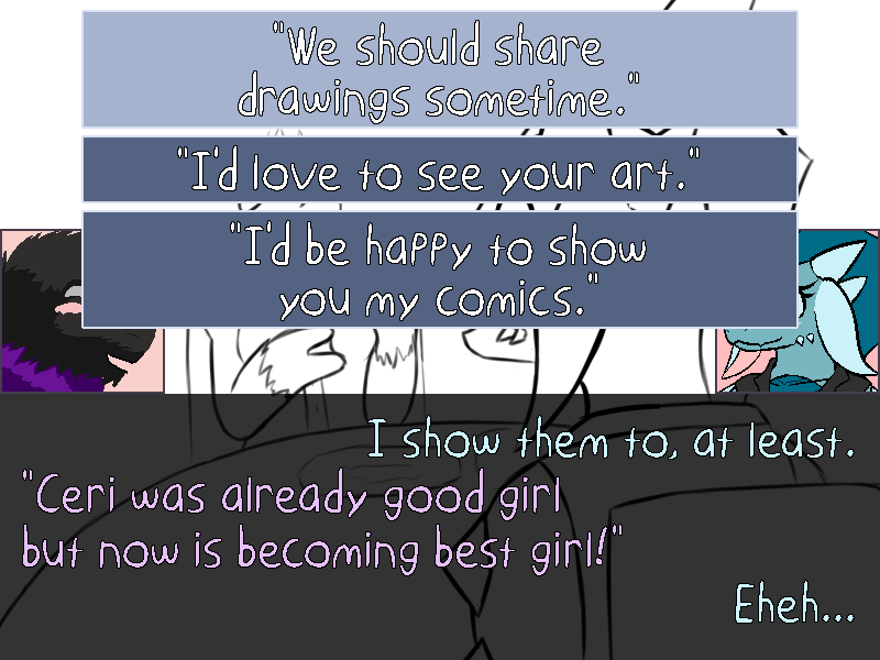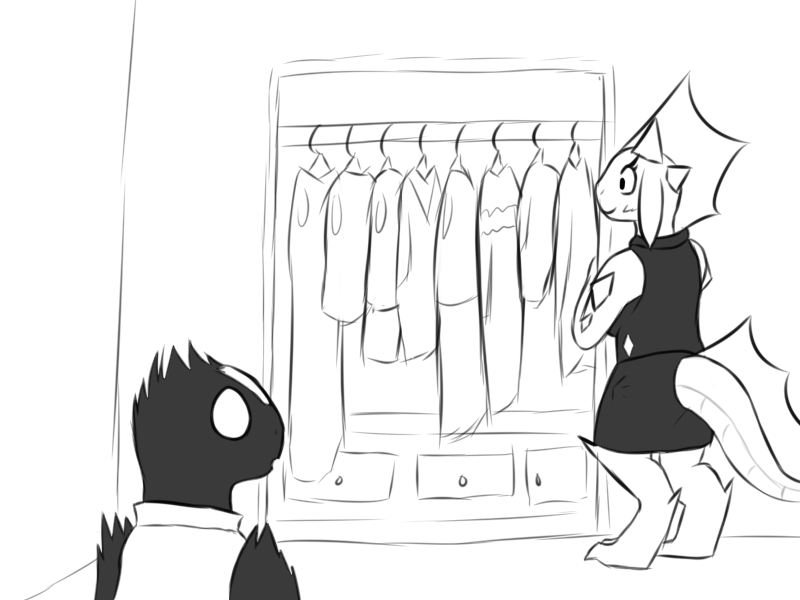 "Guess we're naked together again, heh," you say. "Can't argue with the change in context, though."