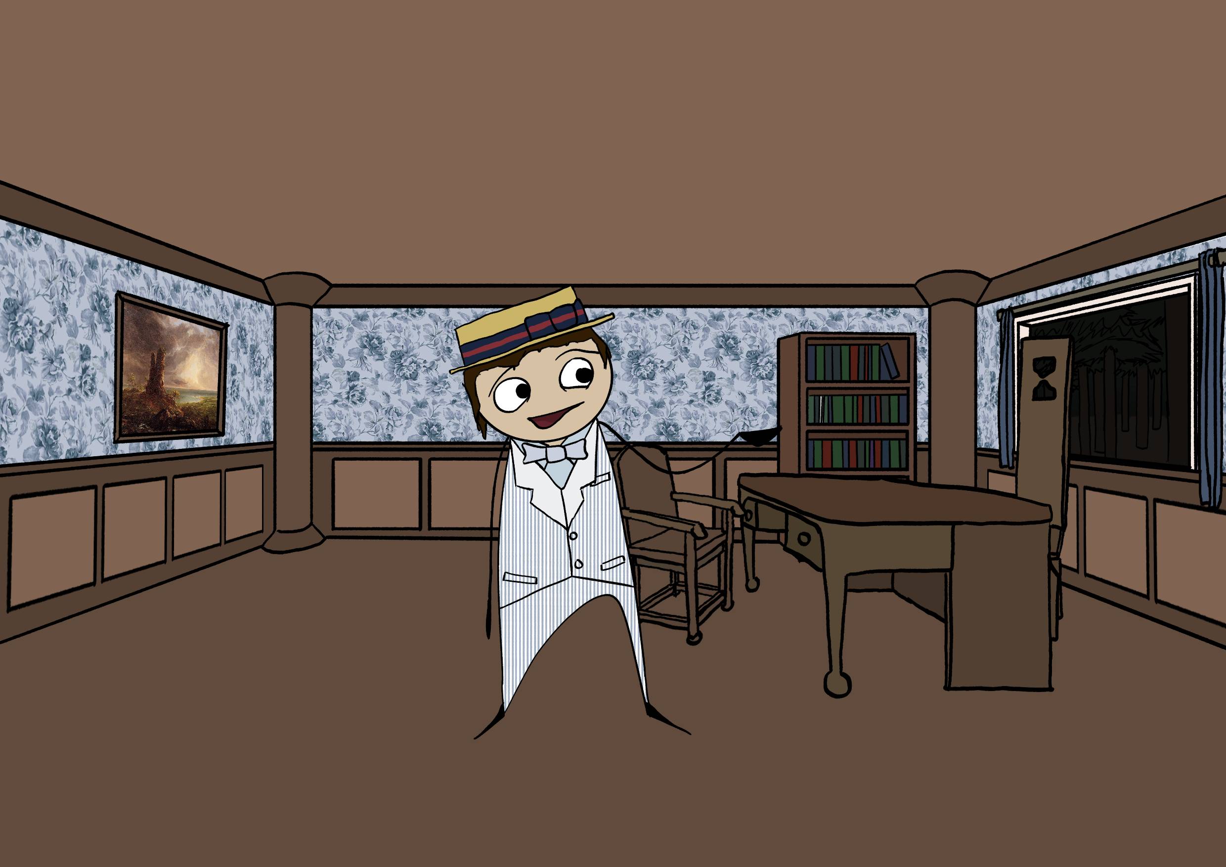 As you take a seat, he pulls opens the drawers on the desk and pulls out some papers, twine, ink, a knife and a quill. He peers up and sees your expression.
