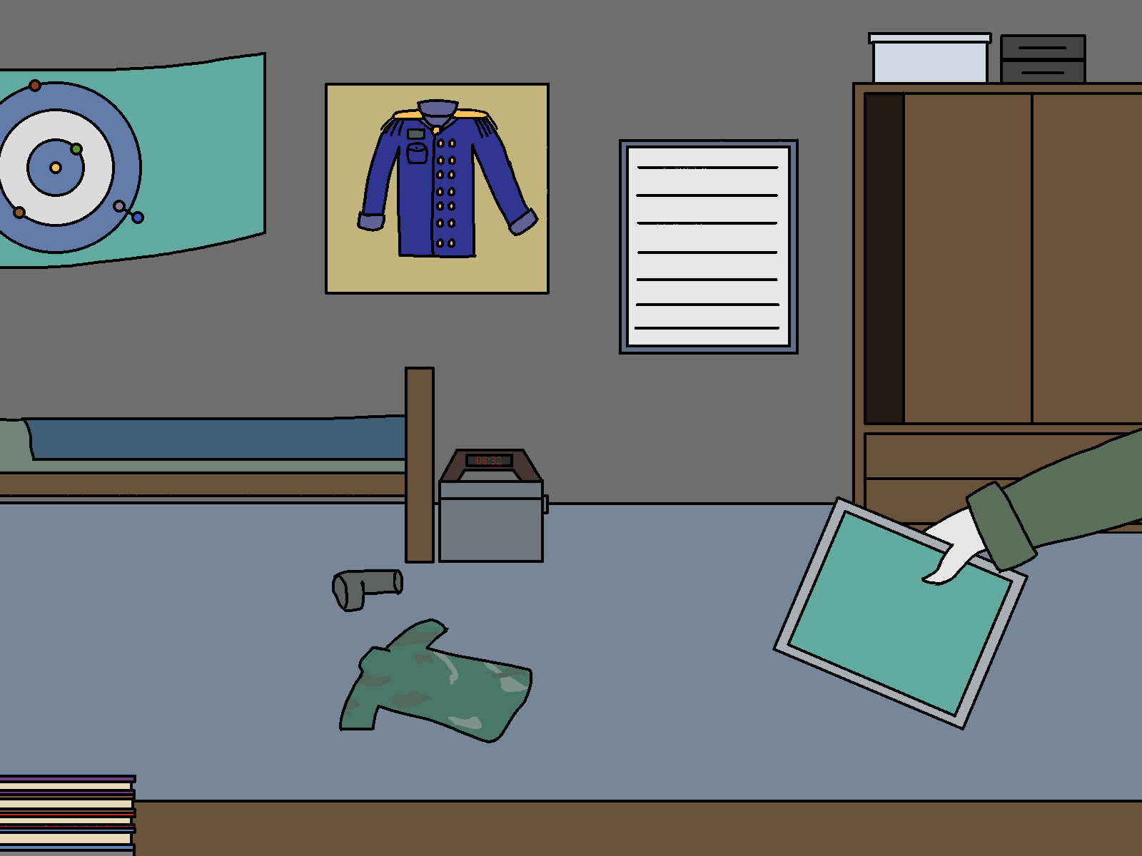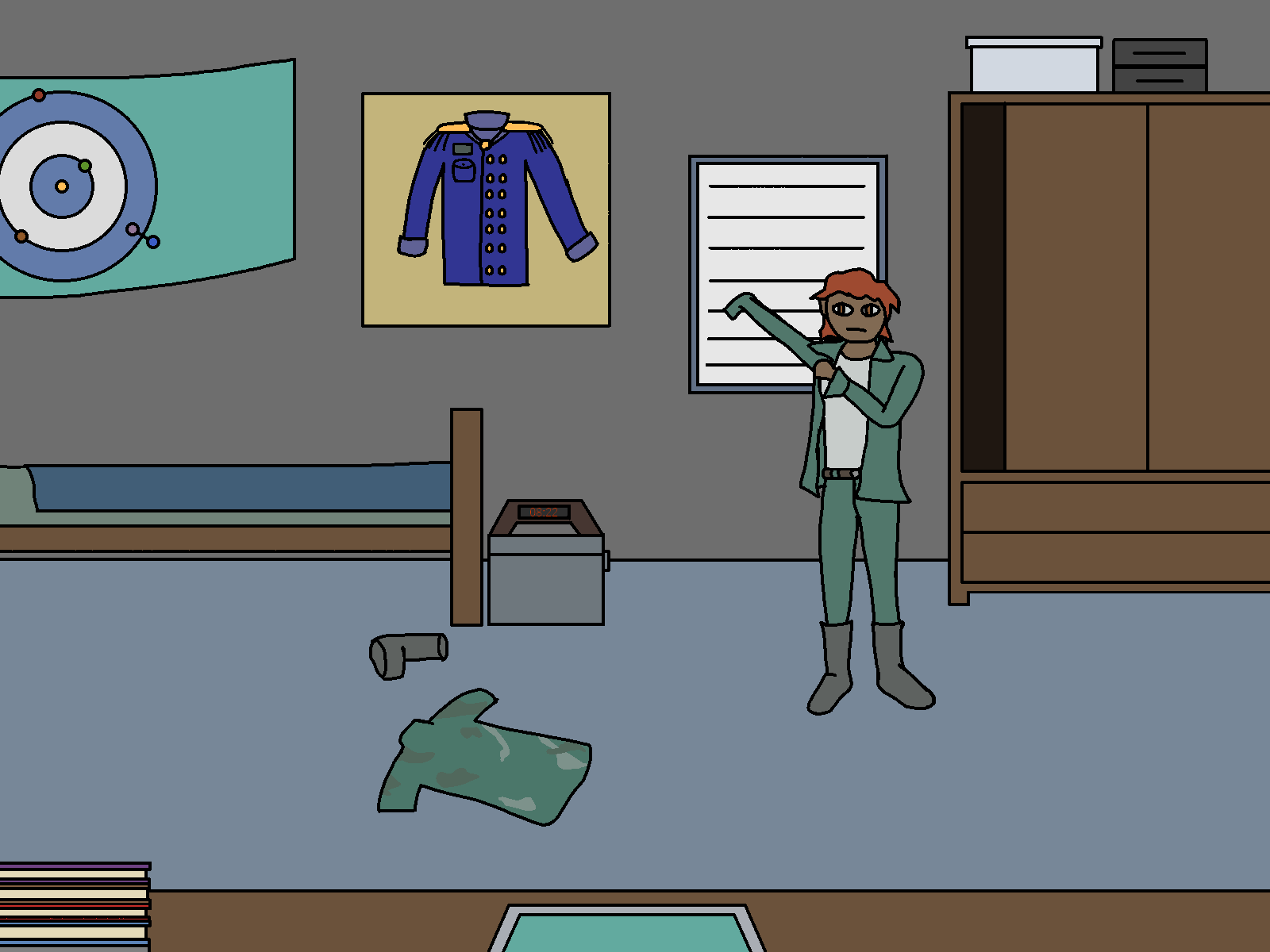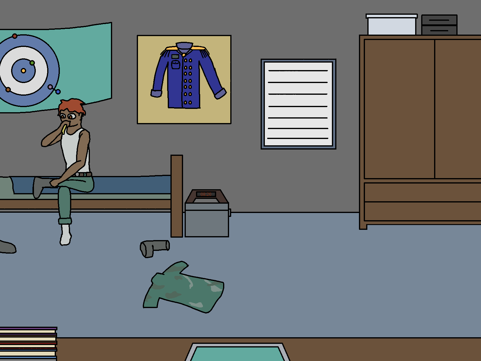 Ah… that’s the formalwear for officers, used for celebrations and the sort. I only got to use it like once or twice, last time was yesterday, on the graduation ceremony. Soon after, I came back here to change to my backup uniform, because I knew I was going to get trashed in the… “after party”. I didn’t want it to get stained. I still needed to get the rest of the uniform framed, but I liked the top more... a Shame I don't get to use it that often.