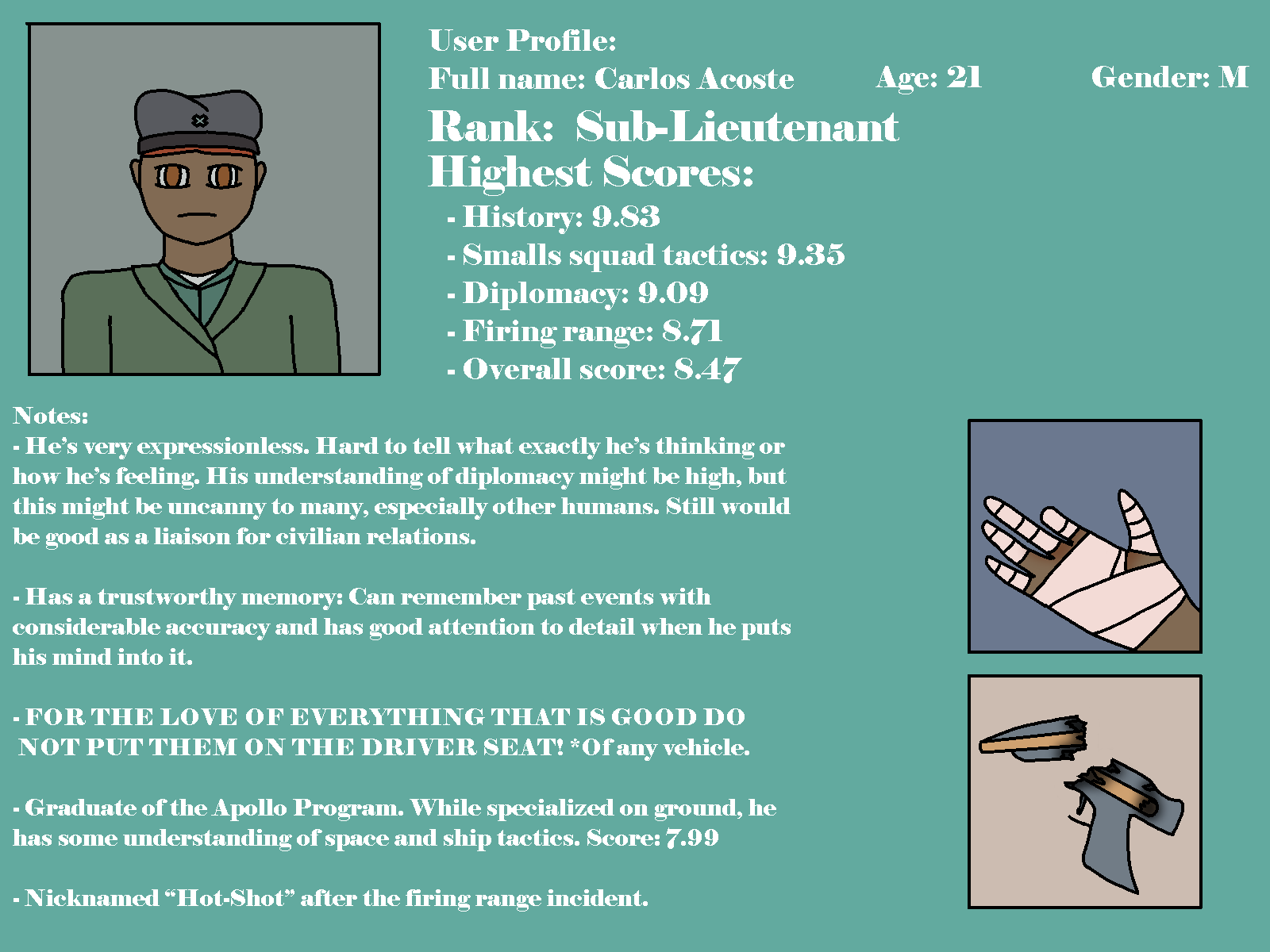 That’s… a good idea… alright, I know Kadmian likes puns, they are quite popular among his culture… Maybe I can do something with that and socks…? Well, anyway I should start setting it up… Hopefully I can make something up as I go… or just keep it simple… he’d appreciate it either way, I think… And he has been a good friend through our days together. Him and Delma… I don’t think I could have made it this far without them, even with my father’s connections, advice, and my own personal reasons to want to enlist.