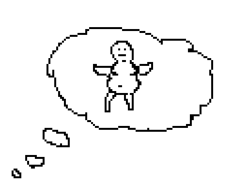 You continue moving the mud around a little bit longer and you soon realize you can make shapes this way. This is a bit like drawing so you try to shape it into something you like. It’s relaxing and fun but you feel you’re not getting much done that looks like anything in particular and probably not the right medium for you if it can even be one. The only thing your art piece is kinda shaped like is like that archetypal fat person you imagined earlier but you figure it’s just because of the lumpy nature of mud. You decide to follow that line of thought no further.