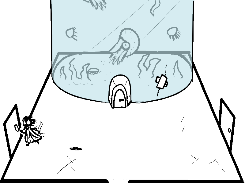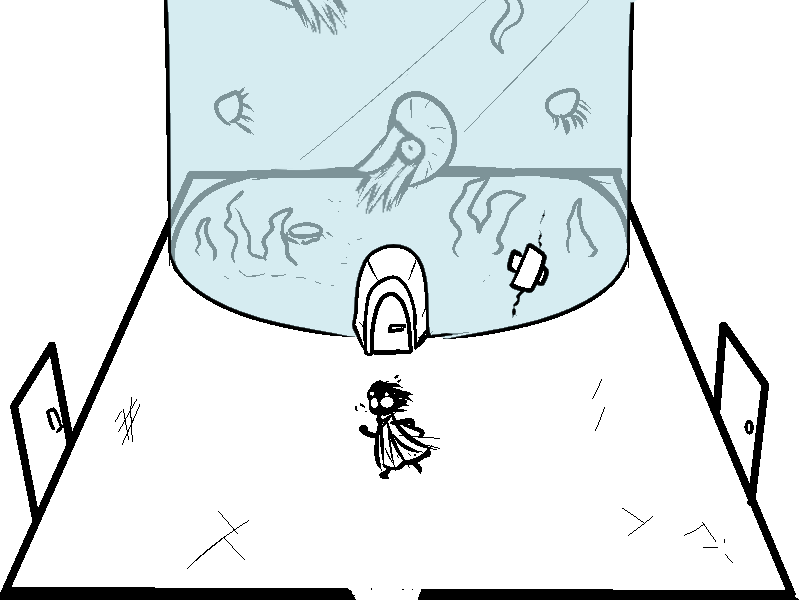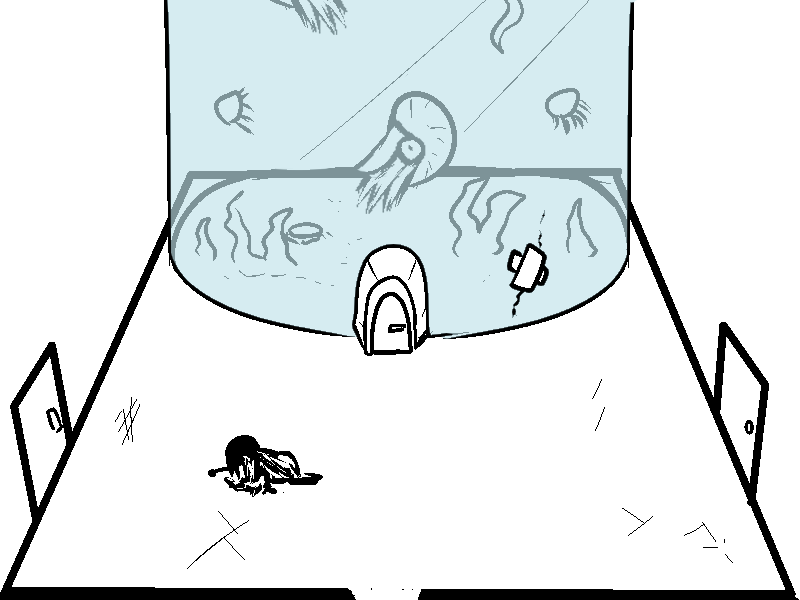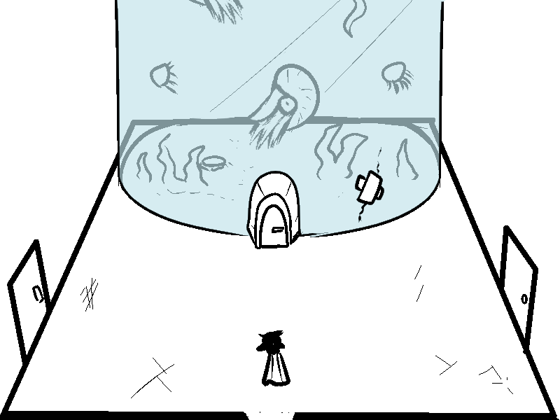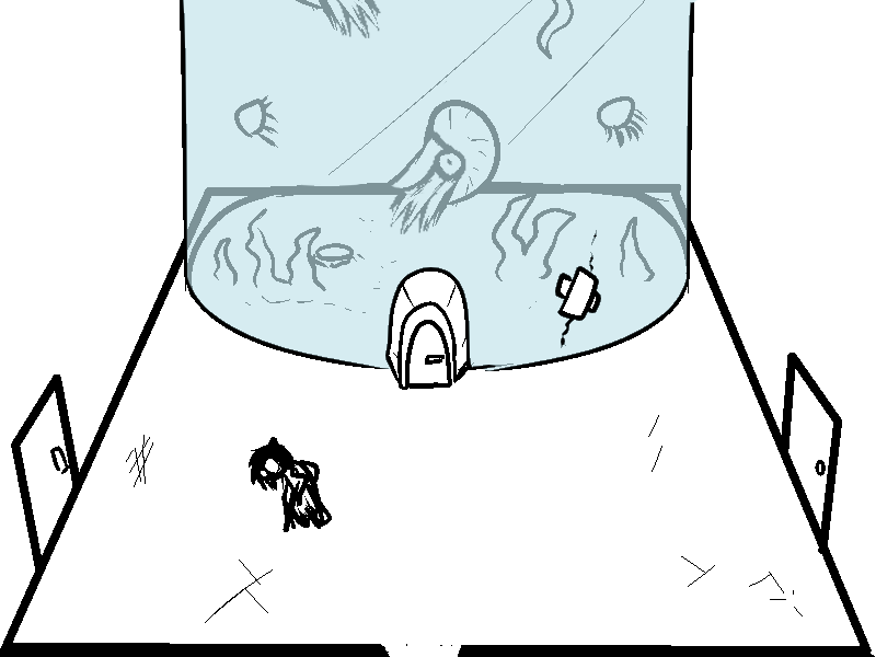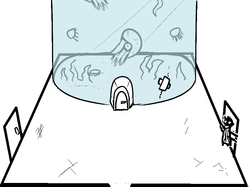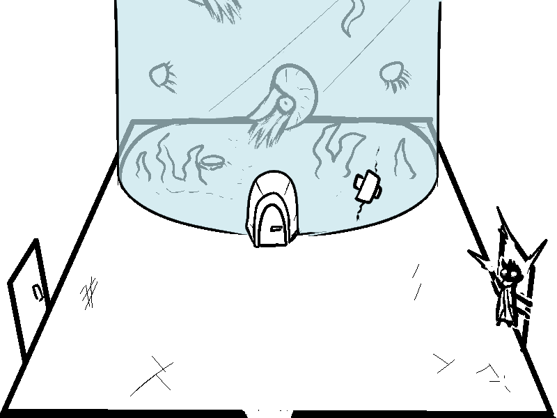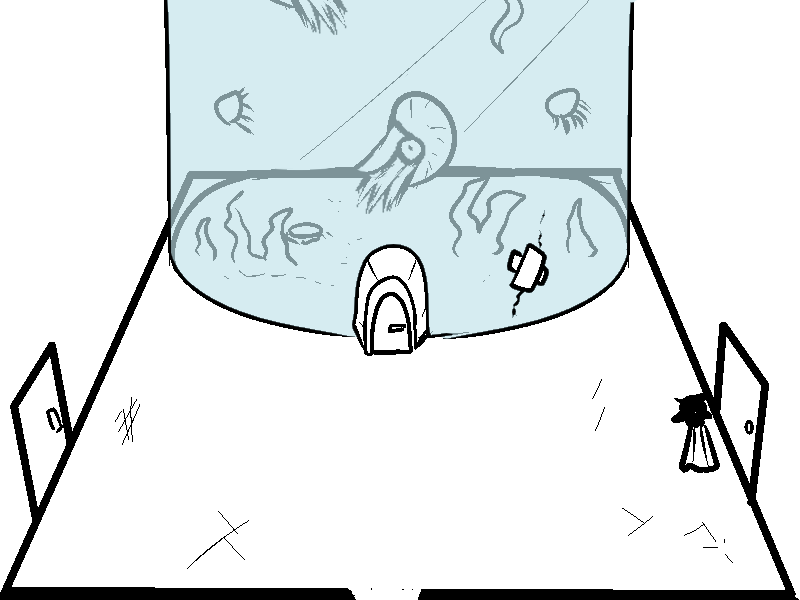 why... why is there a door going into the bottom of the tank? did they just want all the water to rush out and flood the room? Cool fish though.