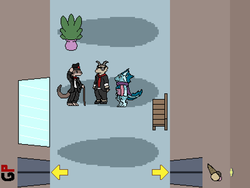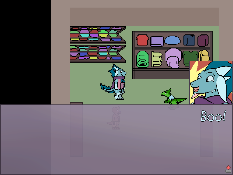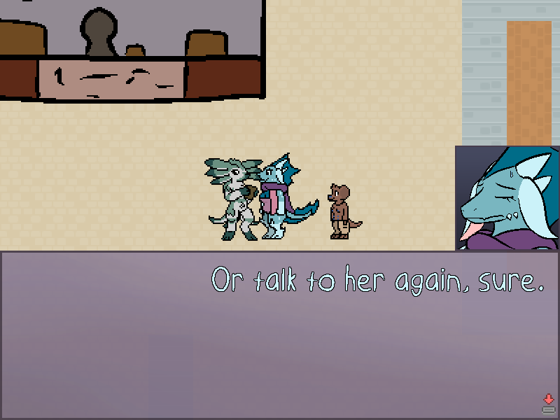 Which actually matches the conversation. Because why would Triti be hesitating on going into a store that they're already inside of? So I think Triti needs to be in the hall, not in the store.