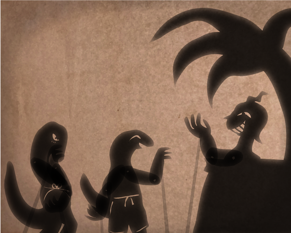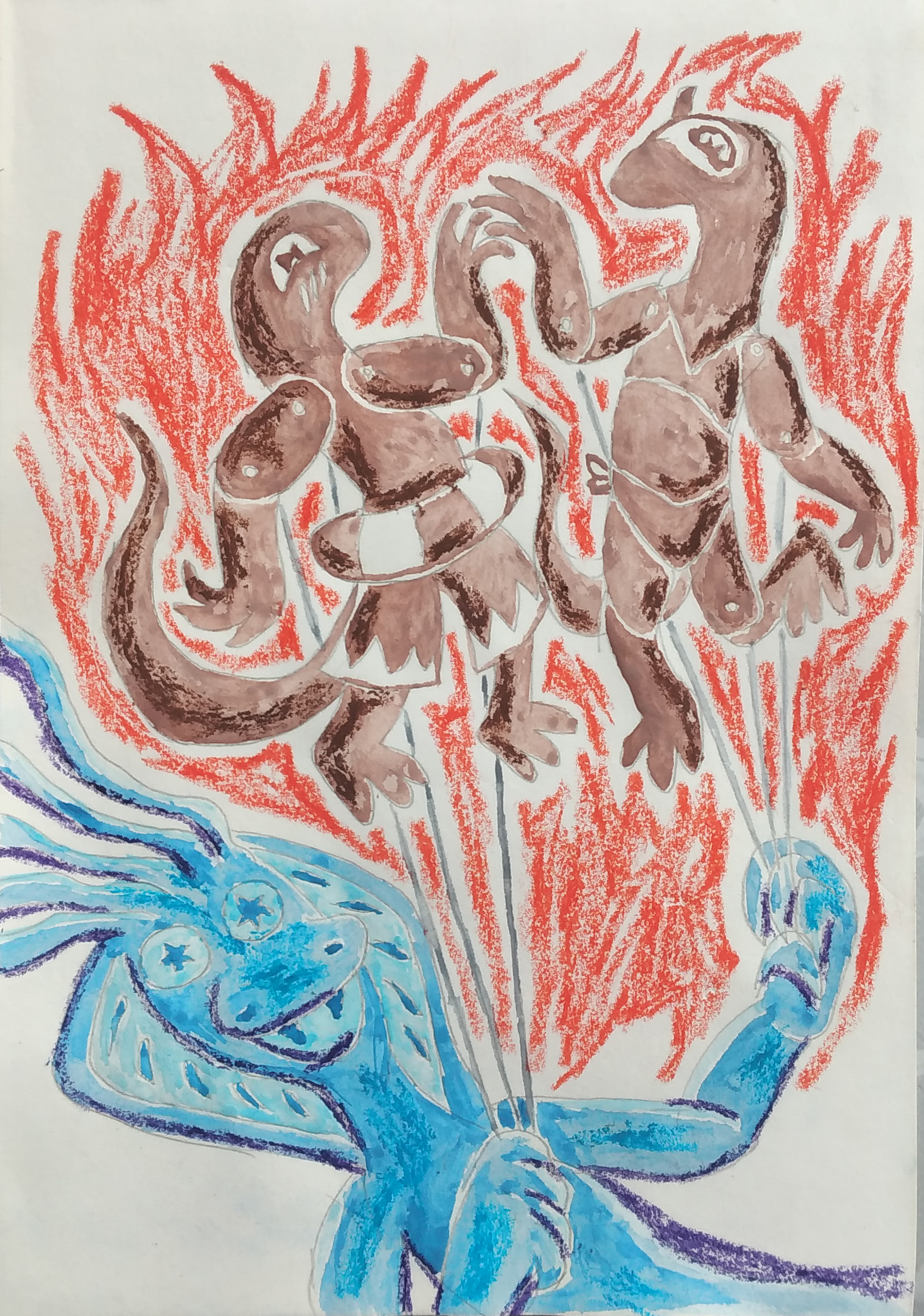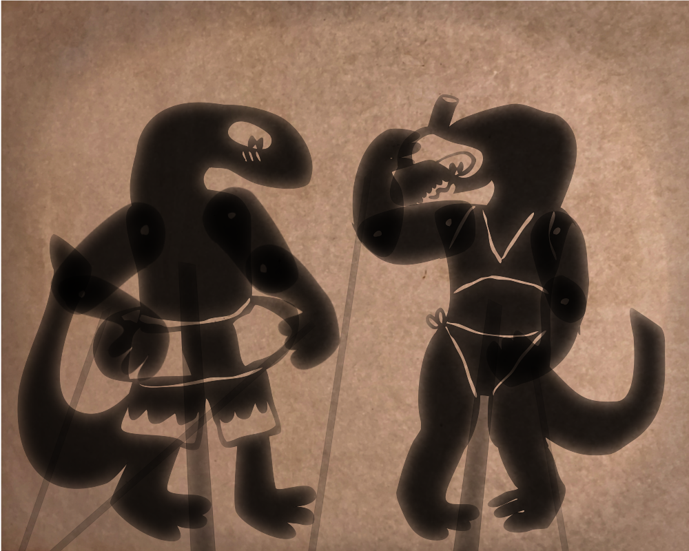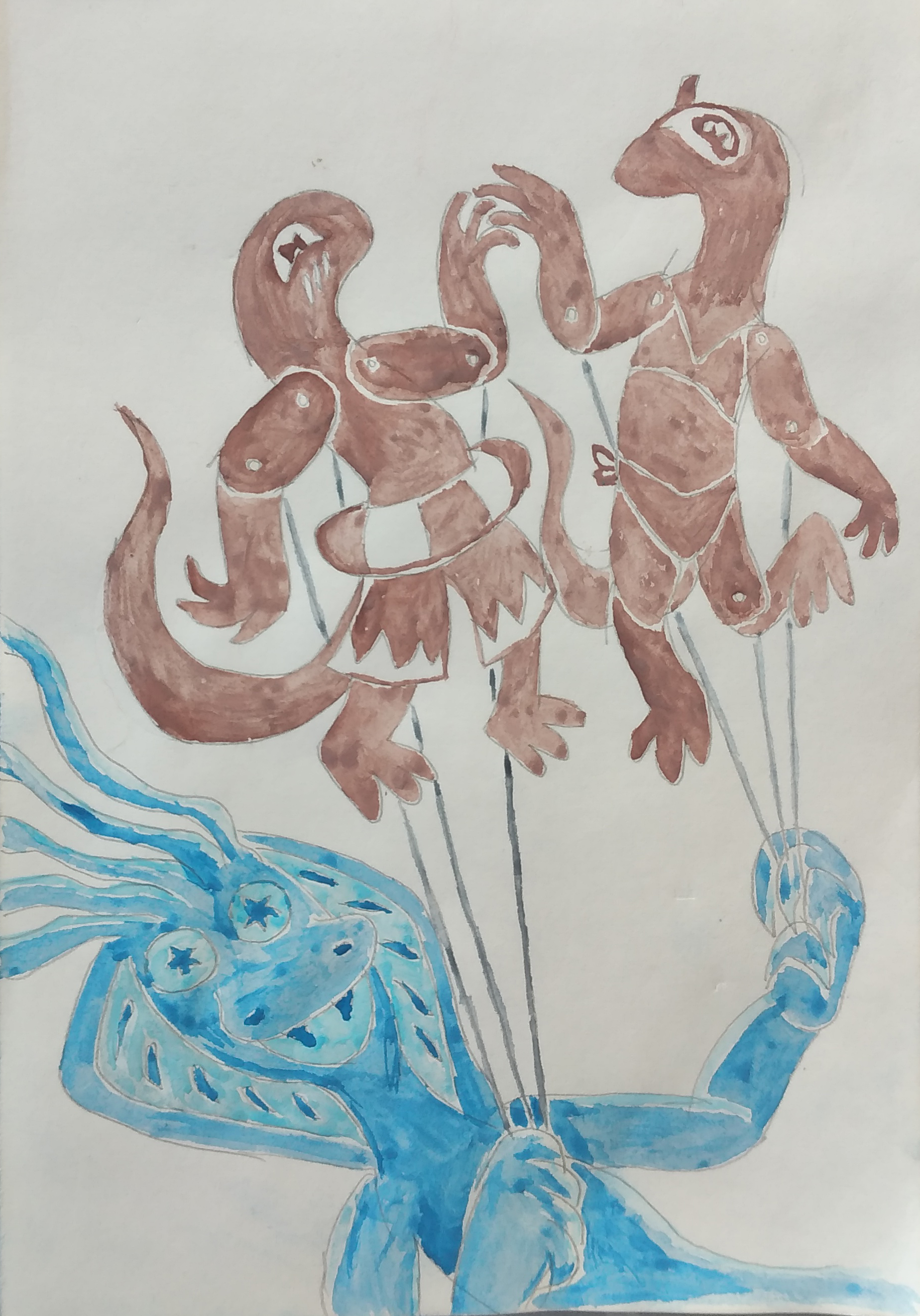 Essence: "Sure, the artist started to do sketch of the two lizard looking creatures."