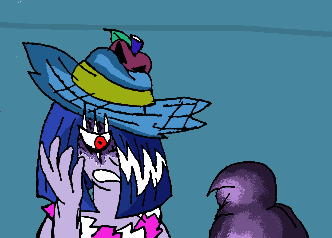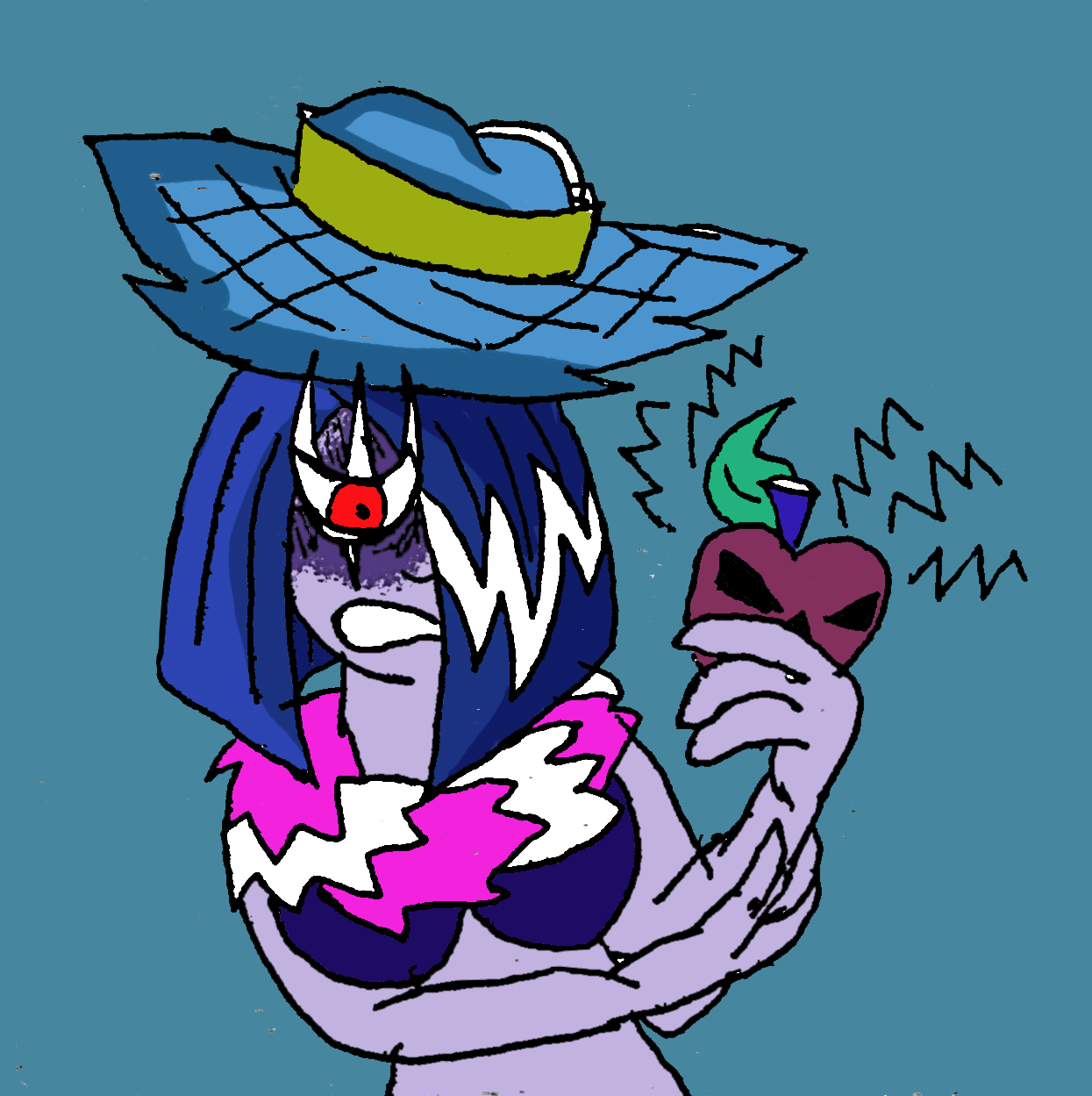 Abdle: "Who do you think you are, trying to copy my whole look!? Just because I showed my body into a fruit, lost my ability to walk and make myself extremely easy to destroy doesn't meant that I want to others to suffer the same fate, but you look like you just want to make a contest out of it! I mean look at yourself, you are bigger and made of metal and are a bright red color. Like you are dressing up yourself as a target, all that is missing is the big singe with written shoot me on it!"