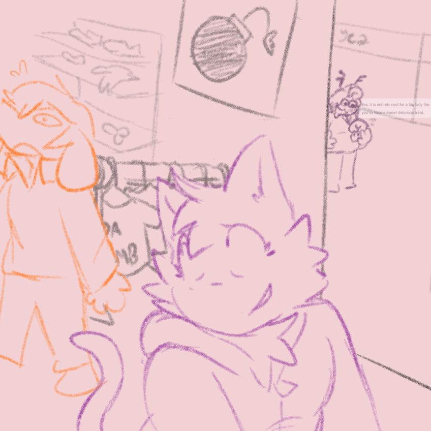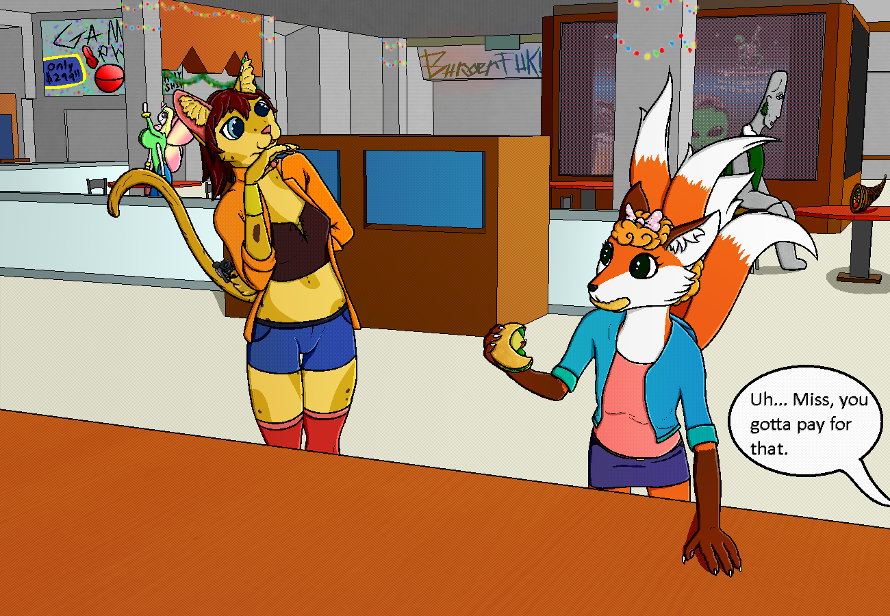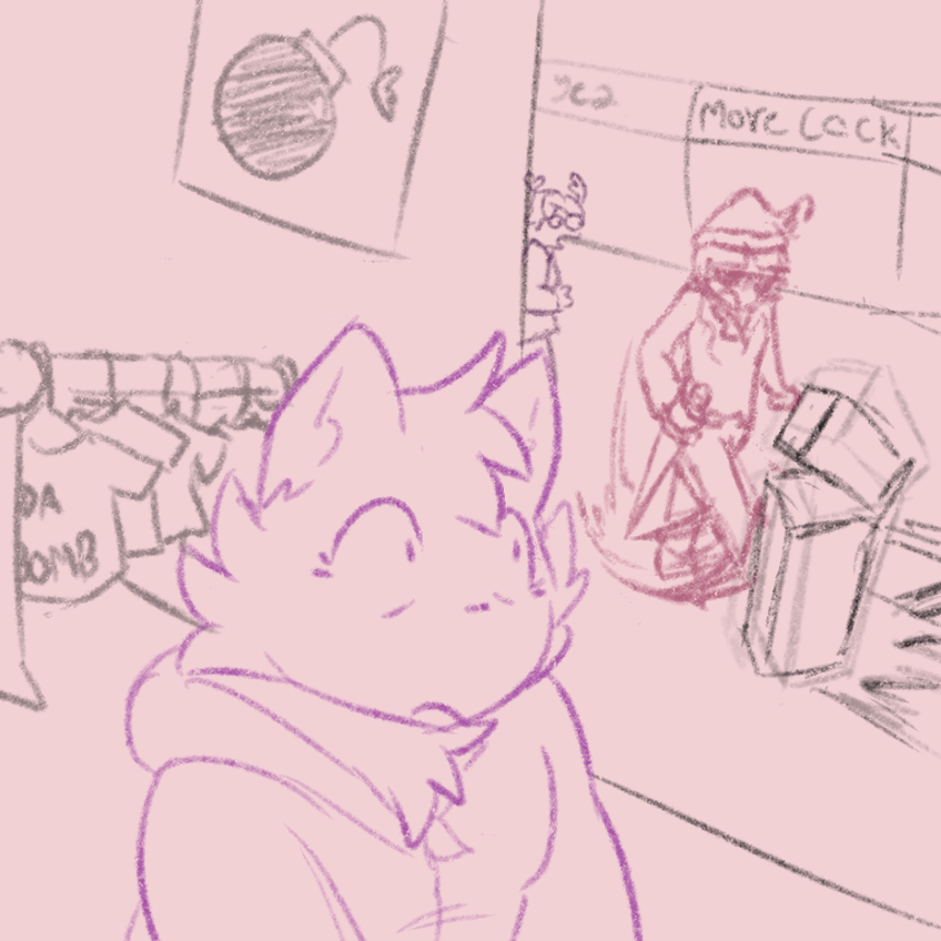 “Yeah, I'm sure it will! Thanks again! Say, are you an employee here? You wouldn't have happened to have seen a kitsune around? I think her name is Dotti, though the dang handout was graffitied. Made figuring out what she might like a heck of a lot harder. Same with the map for the mall, it’s covered in moss or something. I gotta give her a gift for the whole secret santa thing."