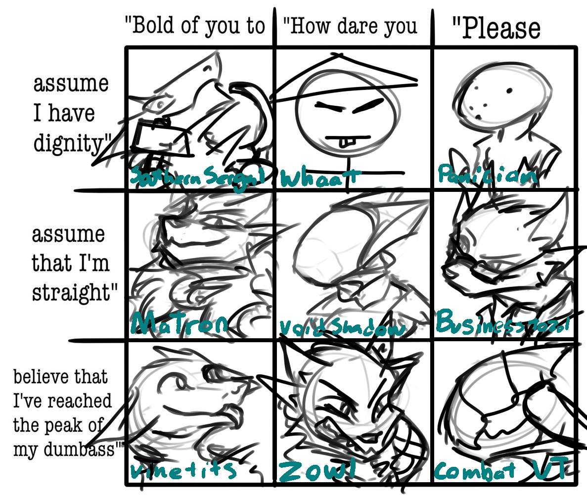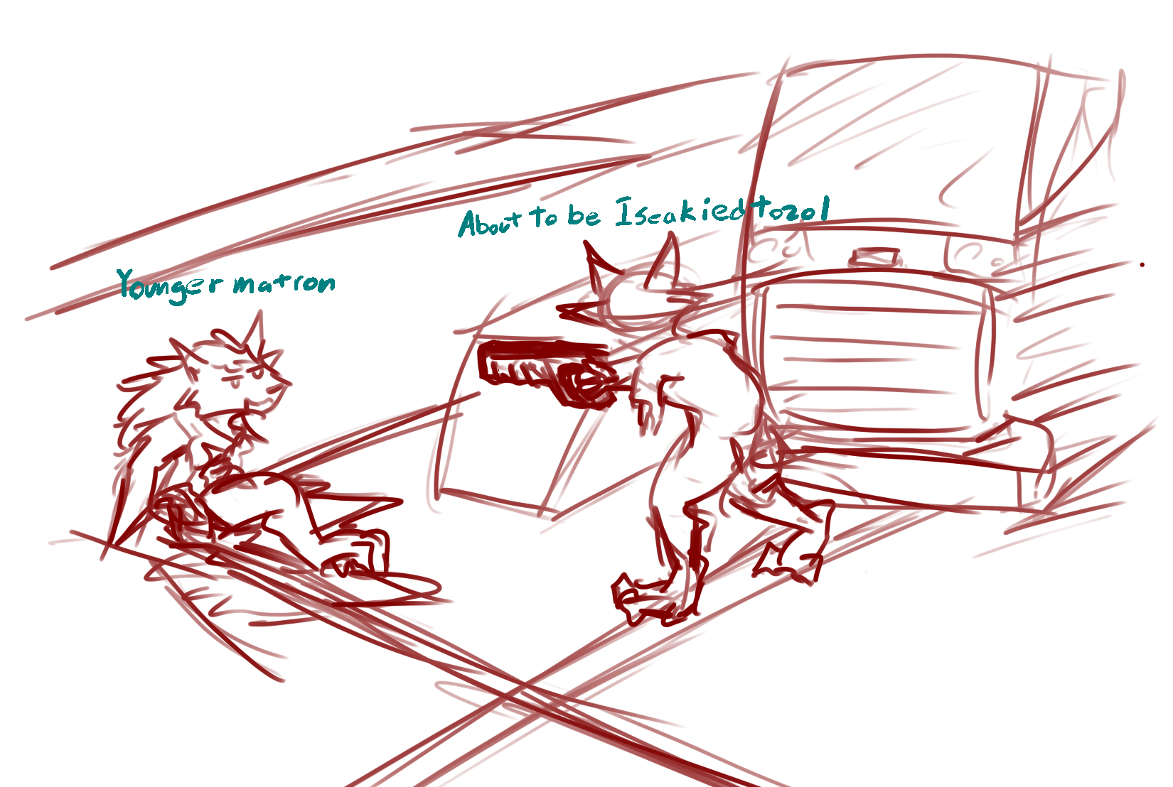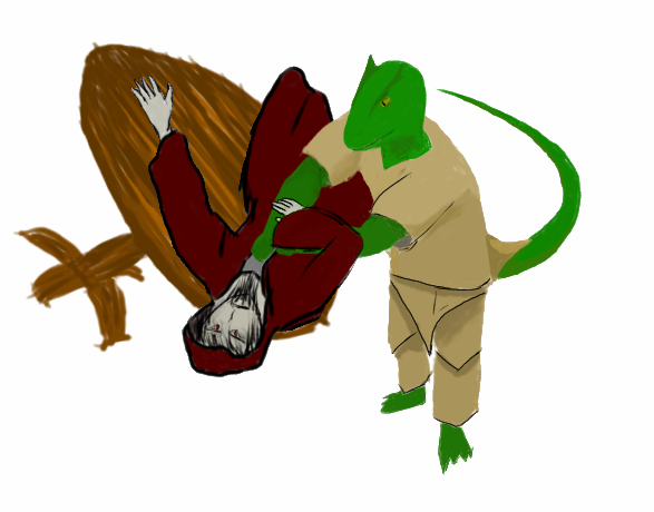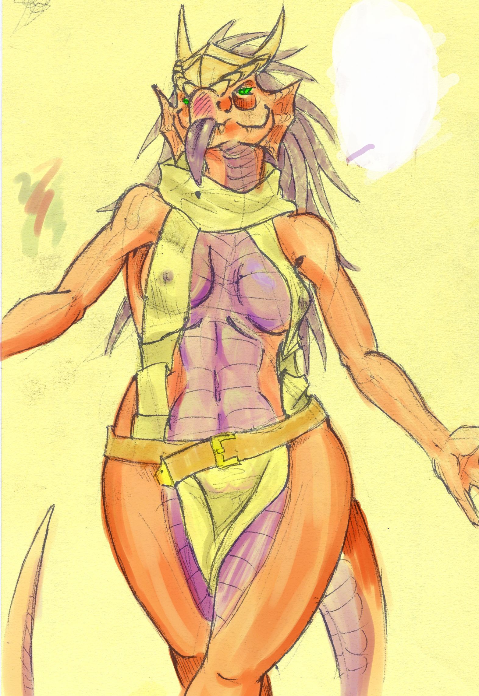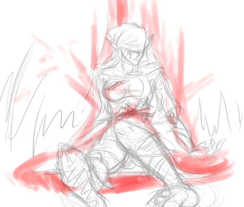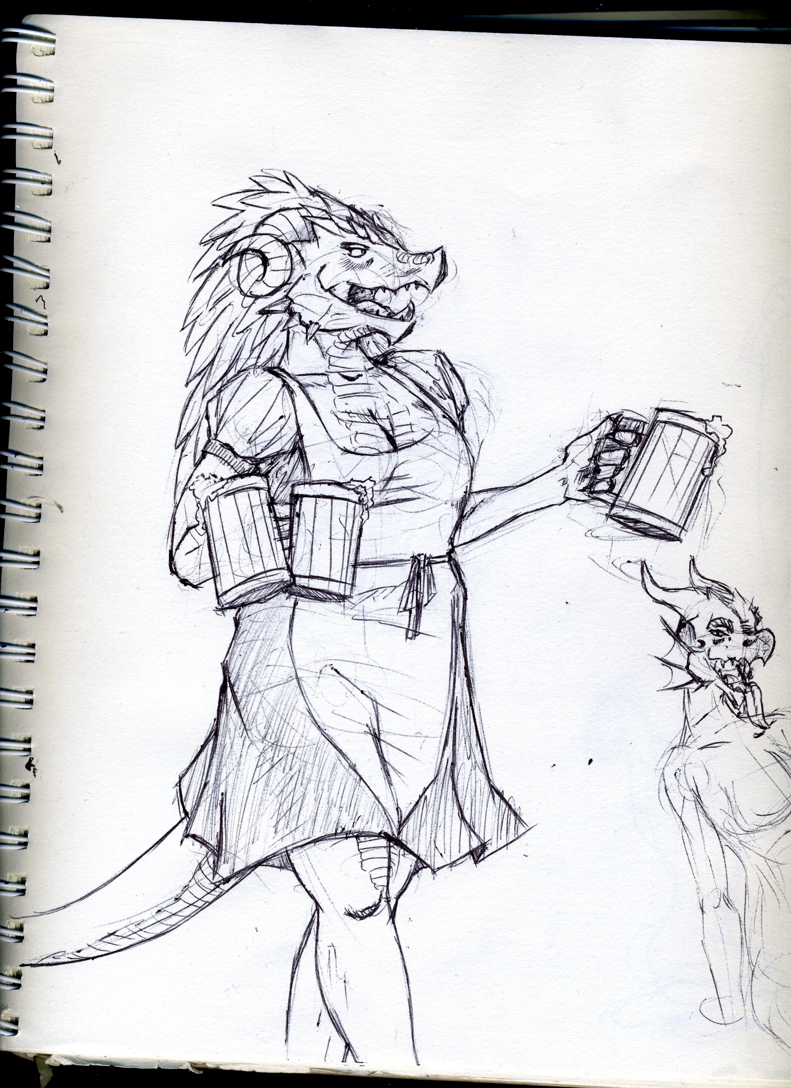 IT BURNS. IT BURNS, BUT I SHALL POST IT. Augh, it's just so mediocre! And it took like 5.5 hours! Aaaaugh. Anybody have any constructive comments? Like how to fix the facial structure, the lack of action in the stances, the coloring, the facial structure? Part of this all may stem from the fact that I did this on an android tablet, rather than with a drawing tablet. Maybe. Plus, as time wore on, I gradually started to lose willpower. Like, the Argonian was originally going to be a girl - waaaasn't working, so I erased a line or two, and presto, you couldn't tell!