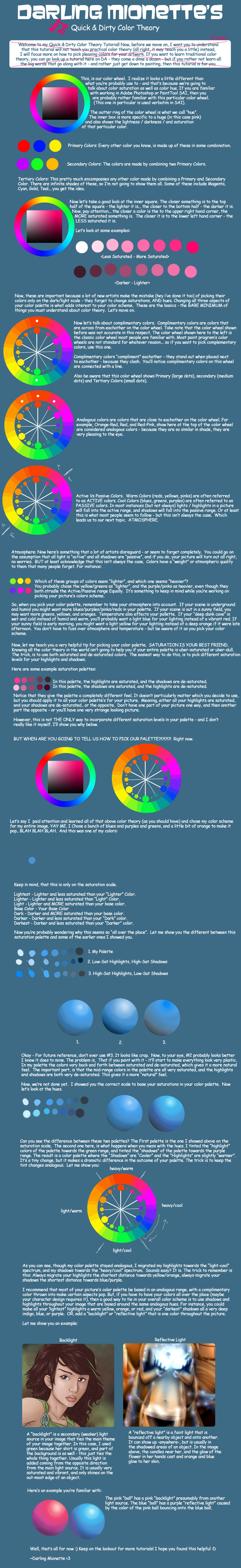 31.) Color: Study color theory. It really isn't all that hard and it's kind vital if you want to not suck. Avoid using gray for shadows and white for highlights. Shadows will be cool and highlights will be warm. I'm not saying make the shadows OMG PURPLE and the highlights JESUS LORD HAVE MERCY ORANGE, but you do want there to be some color implied there.