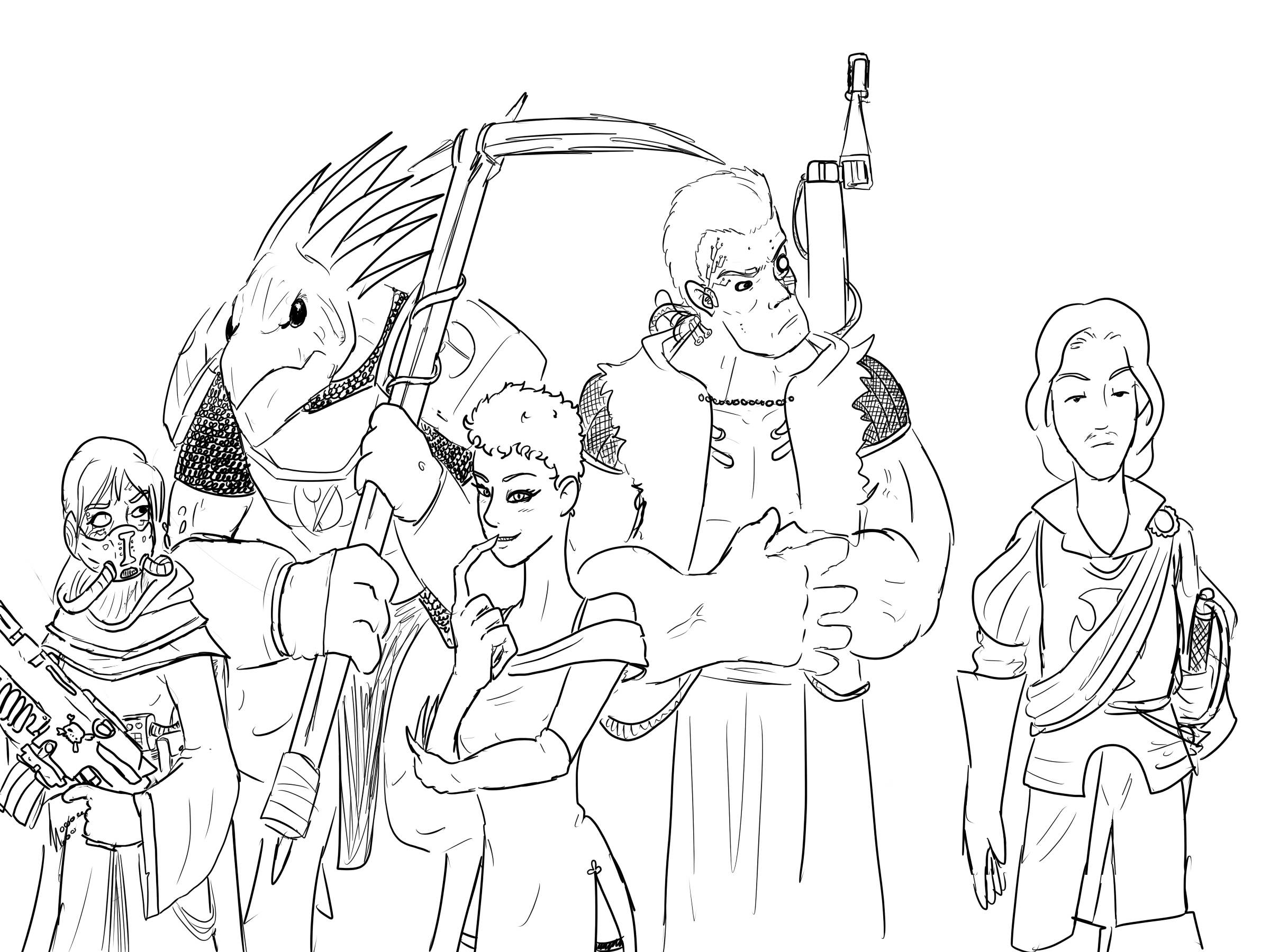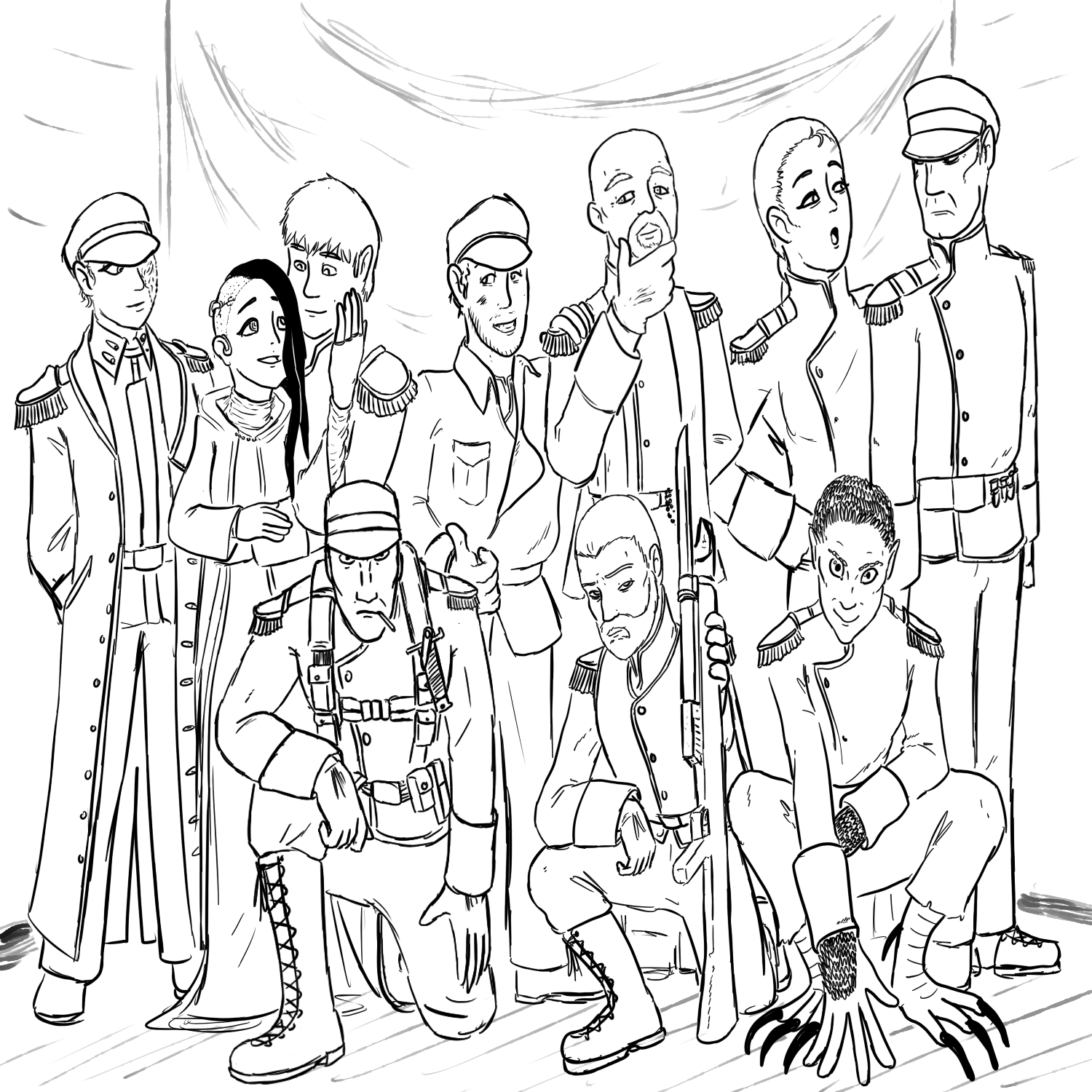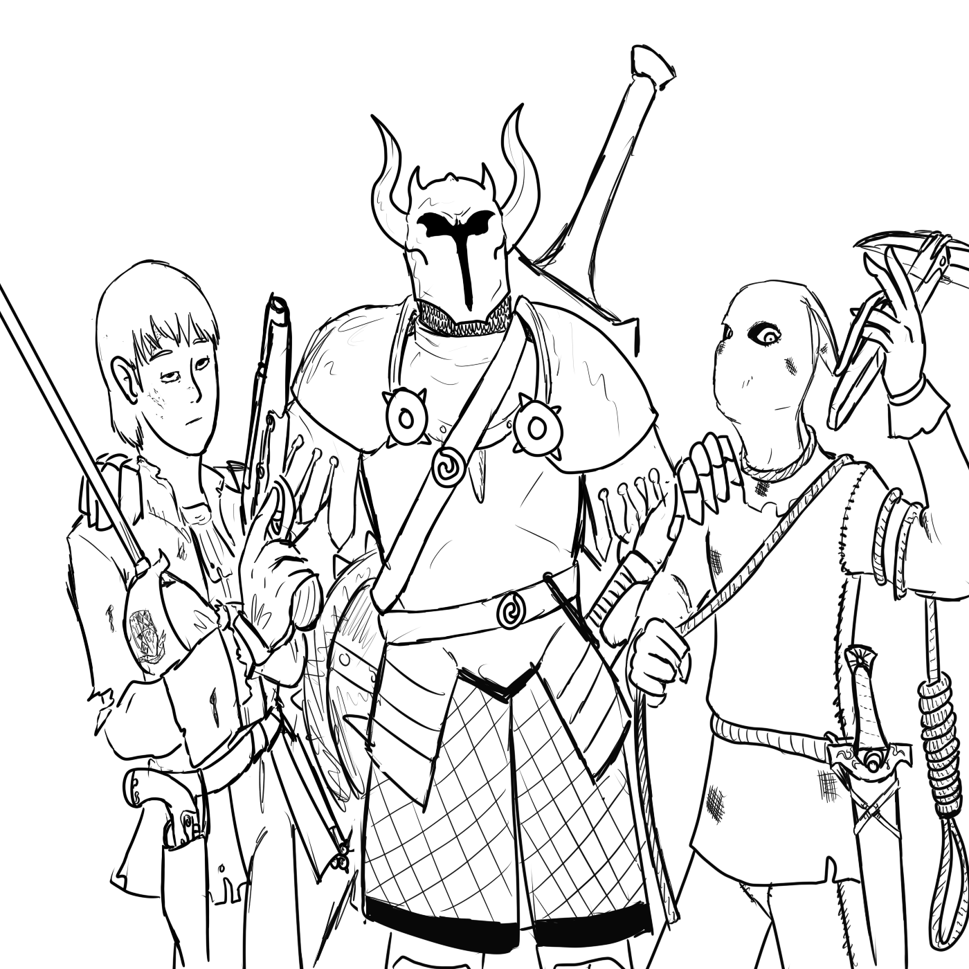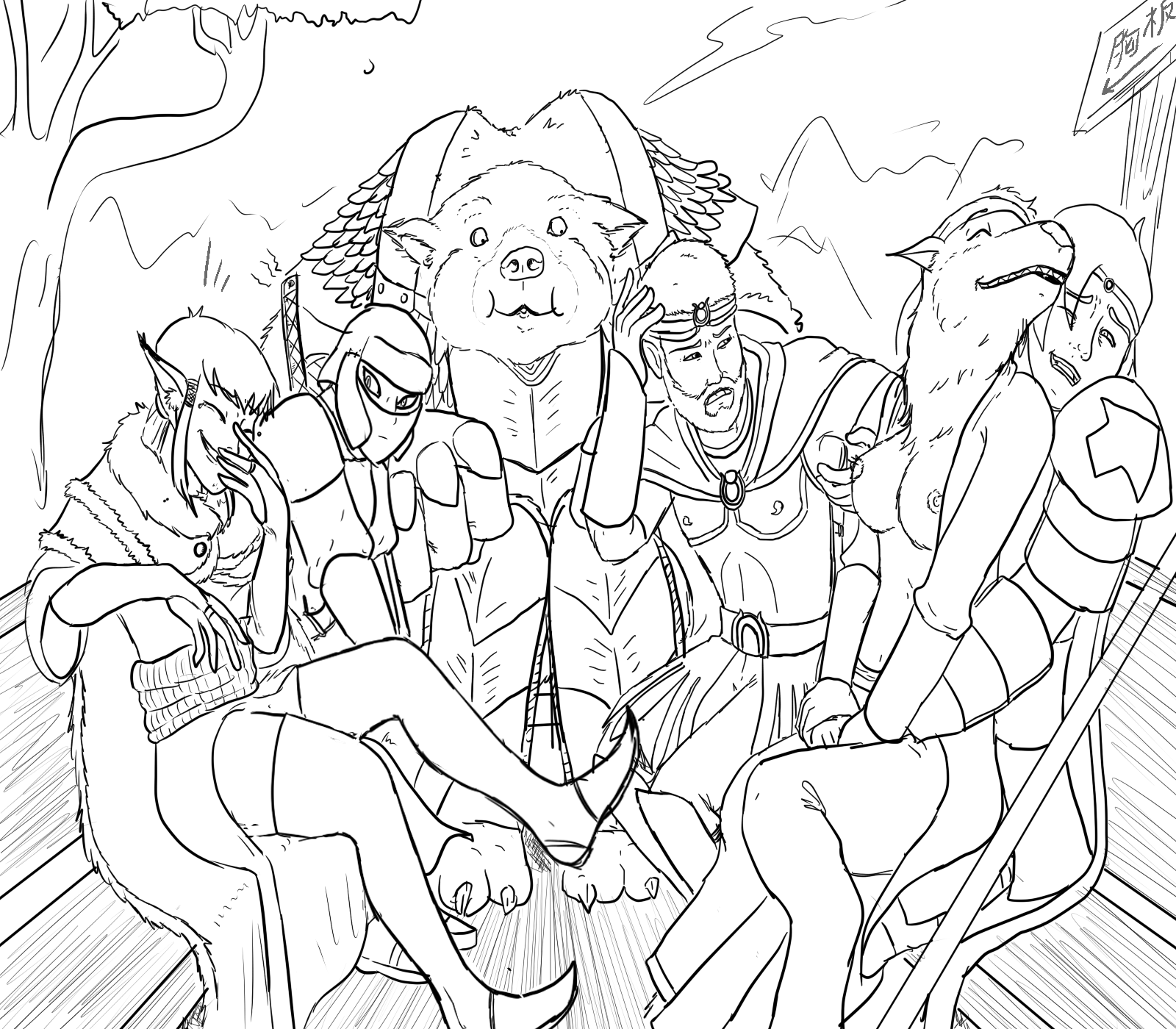 I kindly ask that you draw my RPG group in a family portrait. We play the Riddle of Steel system for our Mythical Europe game. It takes place in 1474, and we've taken over the whole of Romania over the course of the game.