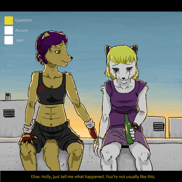 Sure thing. Your upper halves seem pretty good. On the other hand, your lower halves are far too stunted. It makes the characters seem a little malformed or something. Although the colouring is very good, It is quite apparent on >>12554