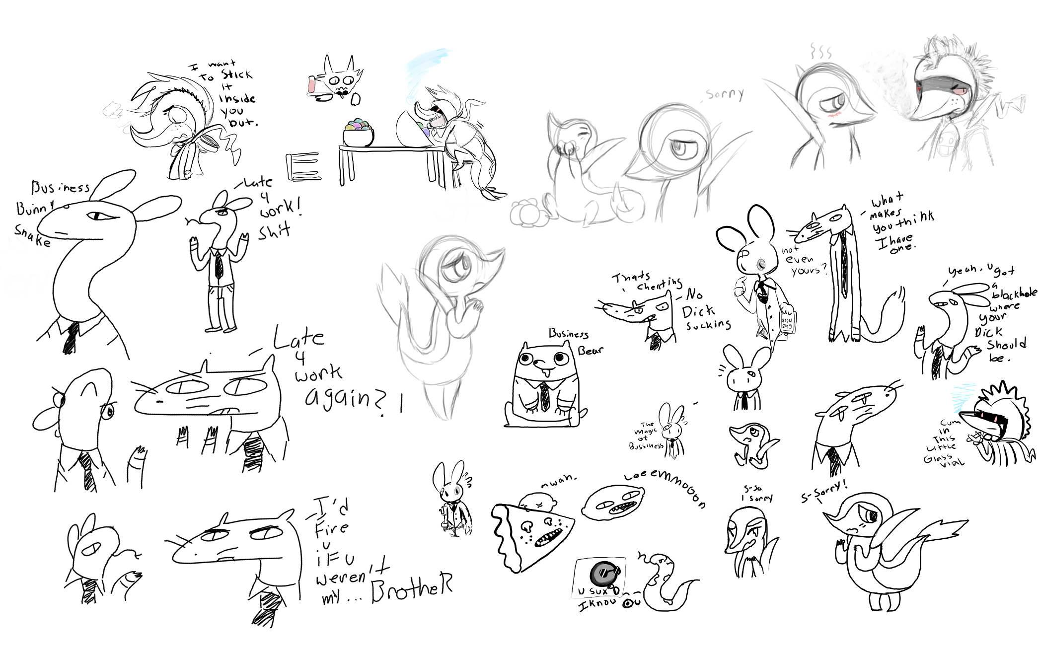 Browsing your drawthread is almost as much of an adventure as following xxxx52 over on tumblr, in that you draw pretty much anything and it's a wild ride to see what gets posted next. Like some sort of freaky porn rollercoaster, but you're the kiddy coaster shaped like a caterpillar while he's the Medusa one that once got a guy killed on it.