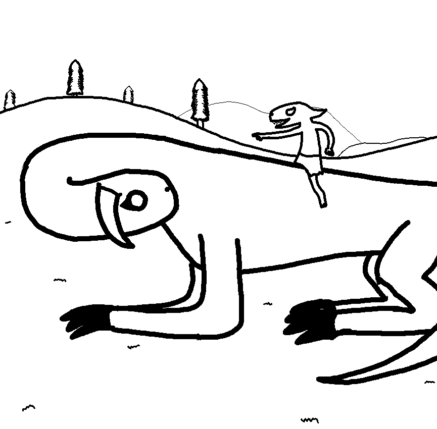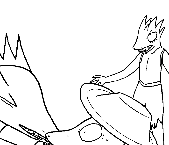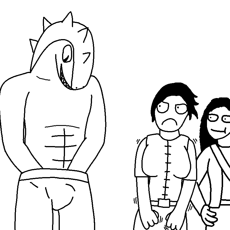 Yet another Pathfinder thing. Hat wanted a more "canon" version of the gnoll molestation drawn above, so he bribed me with video games. Then had me redraw the tits a hundred times to make them fit his standards. And when I was almost done with that, he tried to get me to make the gnoll shirtless and giving the guy a full-on handjob BUT YOU KNOW WHAT? I HAVE TO DRAW THE LINE SOMEWHERE YOU SLIMY CANADIAN BASTARD. Plus that would have been another hour of work or so, so fuck that.