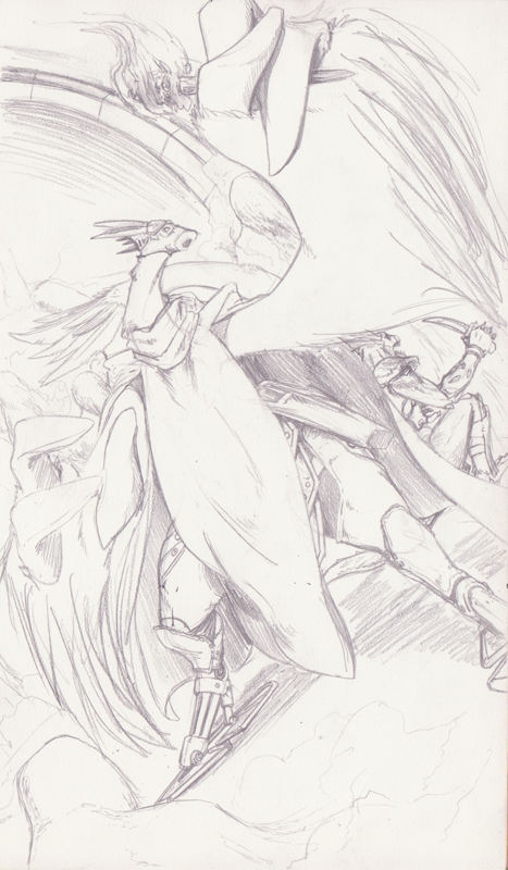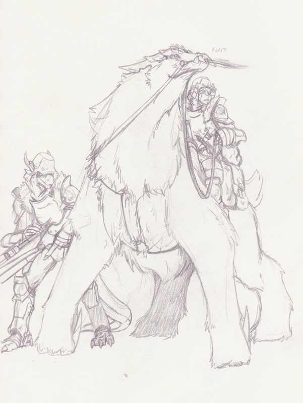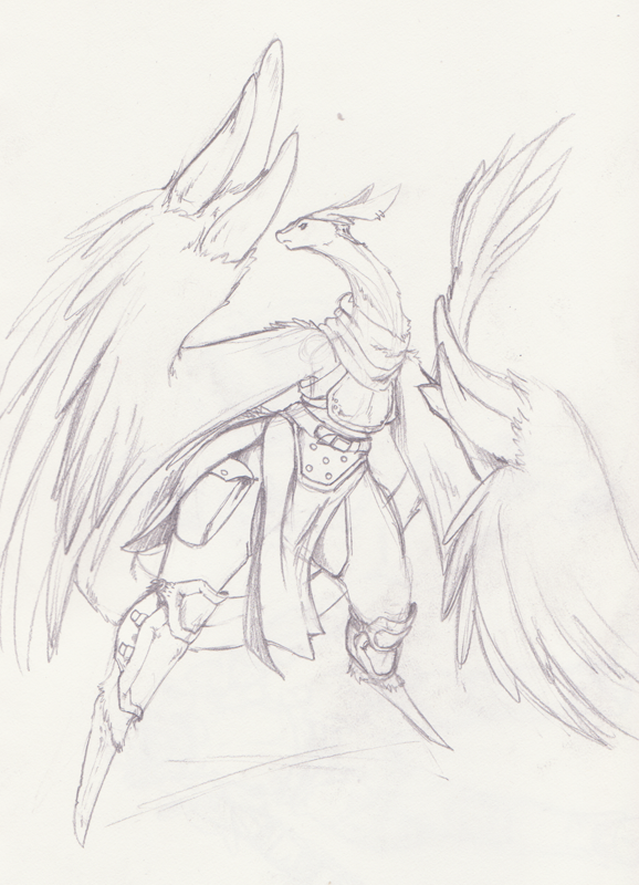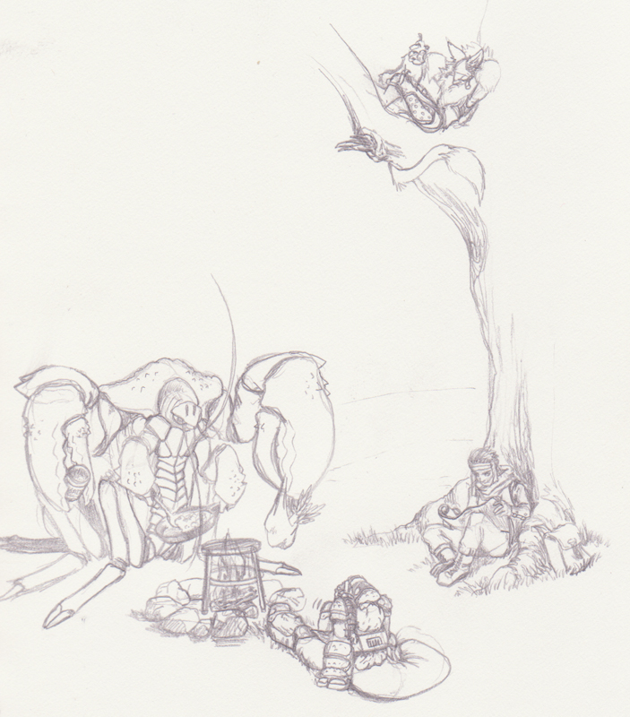 Work sketch of concept I'd kind of like to make a comic of at some point, but I know I'll never do, of one of Anerassi of Thorenald's adventures.